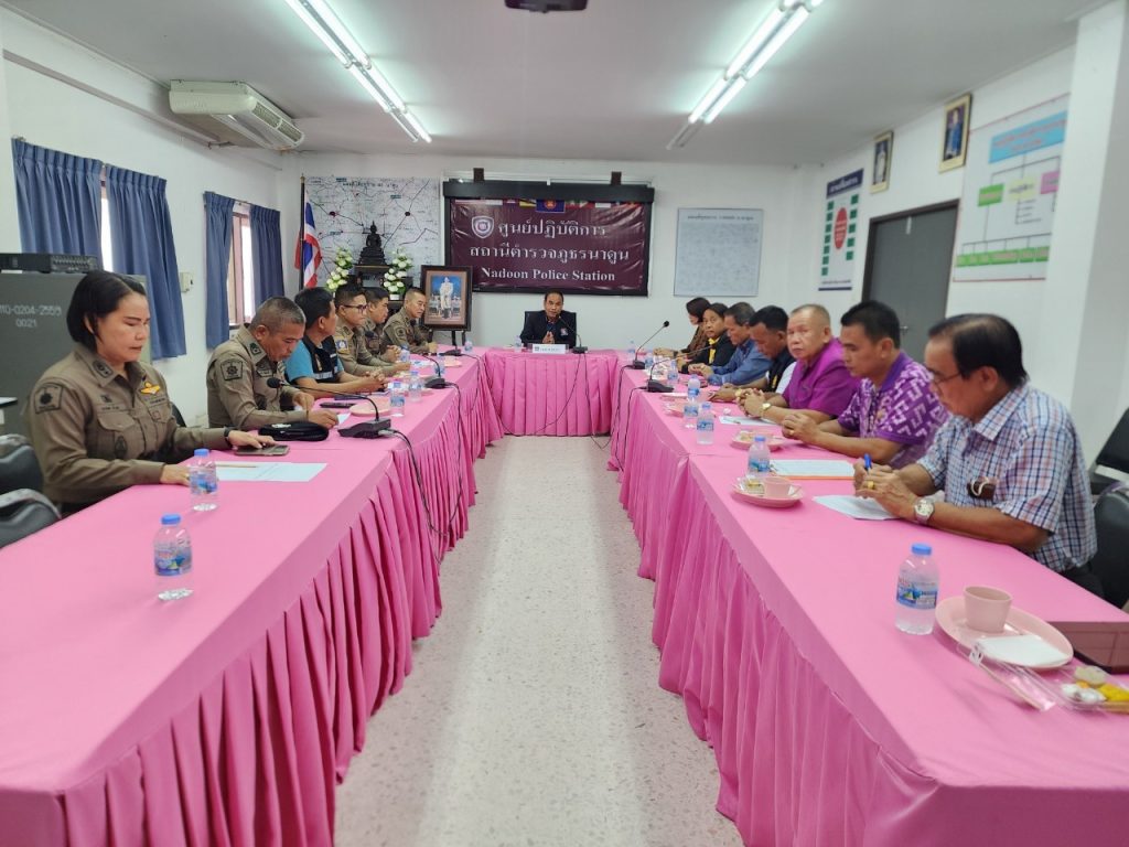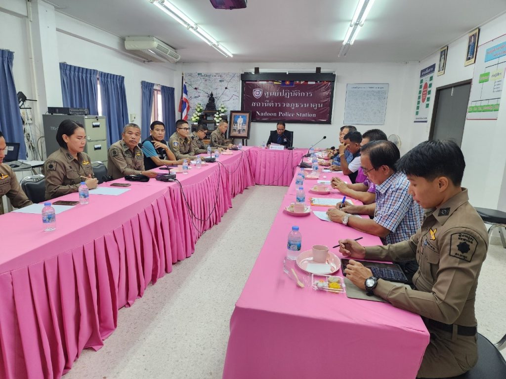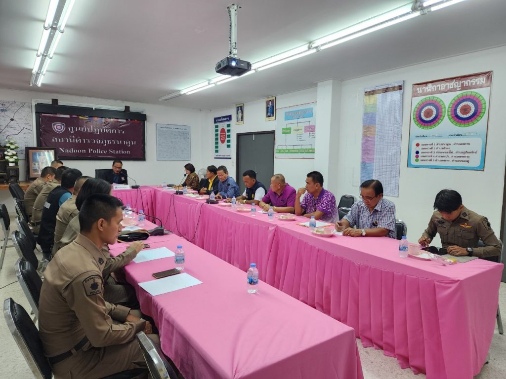 สภ.นาดูน วันนี้ (29 พ.ค.67) เวลา 10.00 น. นายนิคม ปักกาโล นายก อบต.ดงยาง (ประธาน กต.ตร.สภ.นาดูน), พ.ต.อ.พงษ์ศักดิ์ วีระศิริ ผกก.สภ.นาดูน, นางอรวรรณ นุตะดี ปลัดอำเภอ หัวหน้ากลุ่มงานบริหารงานปกครองอำเภอนาดูน พร้อม กต.ตร.สภ.นาดูน รวม 18 ท่าน ร่วมประชุมติดตามผลการดำเนินของ สภ.นาดูน ณ ห้อง ศปก.สภ.นาดูน