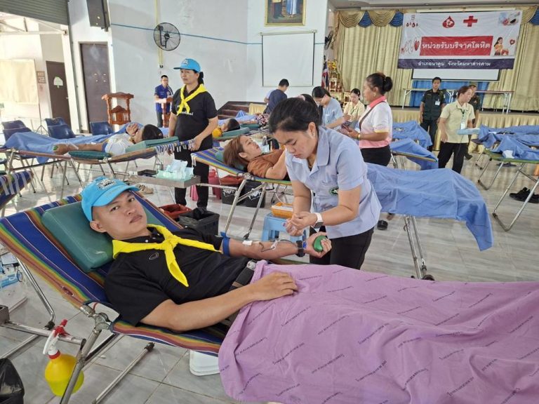 สภ.นาดูน วันที่ 24 มี.ค.2569 แต่เวลา 08.30 น. พ.ต.อ.พงษ์ศักดิ์ วีระศิริ ผกก.สภ.นาดูน ,พ.ต.ท.ถาวร ยอดยรรยง รอง ผกก.ป.ฯ, พ.ต.ท.ปิติพงษ์ ขาวภา สวป.(ชส.)ฯ มอบหมายให้ ข้าราชการตำรวจจิตอาสา สภ.นาดูน จำนวน 5 นาย ร่วมกับจิตอาสาข้าราชการอื่น 40 คน และประชาชนจิตอาสา จำนวน 150 คน ร่วมทำกิจกรรมจิตอาสา บริจาคโลหิตกับหน่วยรับบริจาคโลหิตเคลื่อนที่เหล่ากาชาดจังหวัดมหาสารคาม ณ หอประชุมที่ว่าอำเภอนาดูน