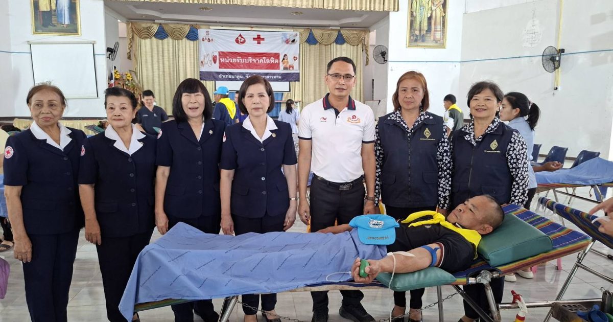 สภ.นาดูน วันที่ 24 มี.ค.2569 แต่เวลา 08.30 น. พ.ต.อ.พงษ์ศักดิ์ วีระศิริ ผกก.สภ.นาดูน ,พ.ต.ท.ถาวร ยอดยรรยง รอง ผกก.ป.ฯ, พ.ต.ท.ปิติพงษ์ ขาวภา สวป.(ชส.)ฯ มอบหมายให้ ข้าราชการตำรวจจิตอาสา สภ.นาดูน จำนวน 5 นาย ร่วมกับจิตอาสาข้าราชการอื่น 40 คน และประชาชนจิตอาสา จำนวน 150 คน ร่วมทำกิจกรรมจิตอาสา บริจาคโลหิตกับหน่วยรับบริจาคโลหิตเคลื่อนที่เหล่ากาชาดจังหวัดมหาสารคาม ณ หอประชุมที่ว่าอำเภอนาดูน