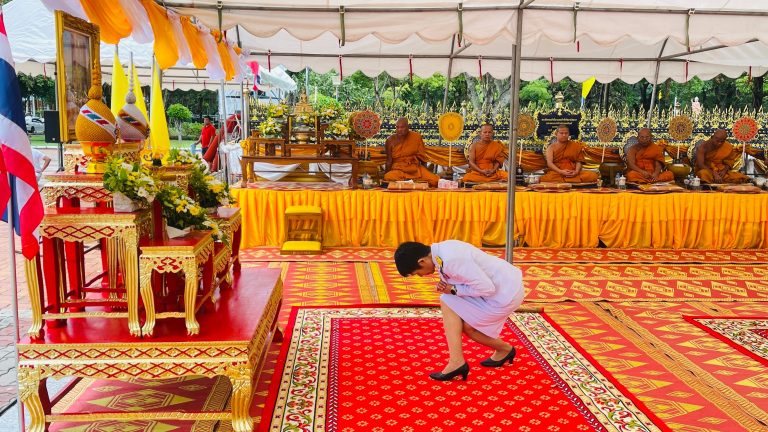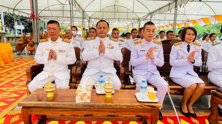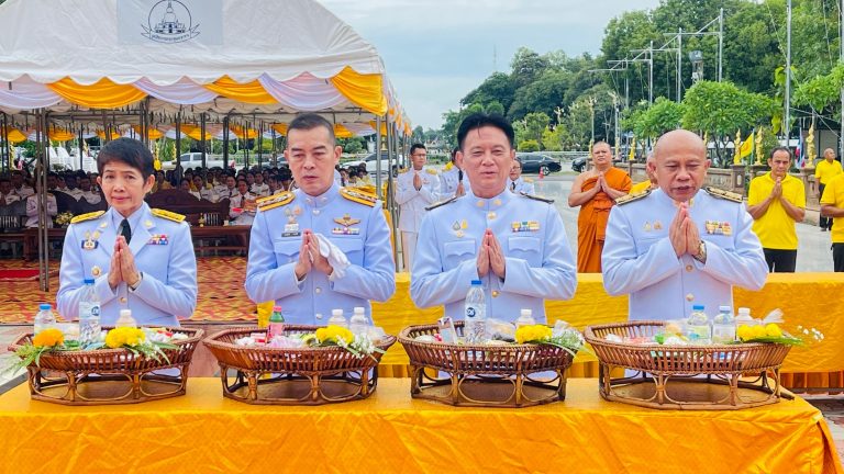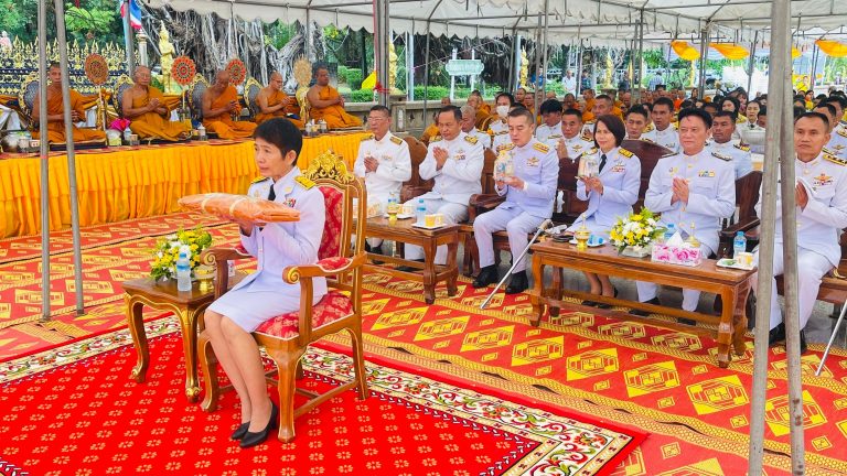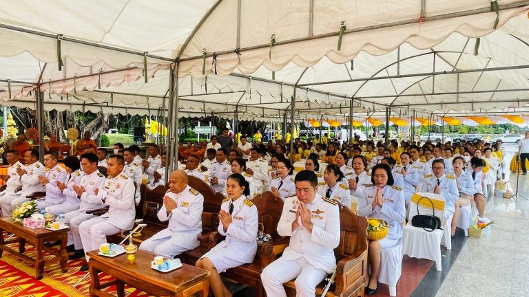 ๑) เวลา ๐๗.๐๐ น. พิธีทำบุญตักบาตรถวายเป็นพระราชกุศล ณ ลานหน้าพระบรมธาตุนาดูน