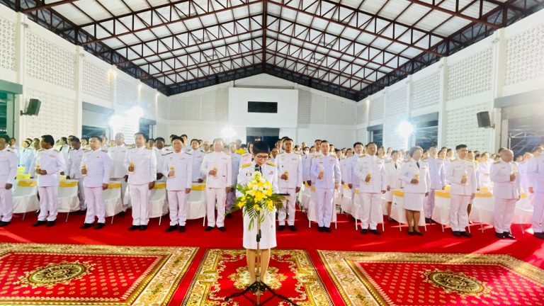 ๒) เวลา ๑๘.๓๐ น. พิธีถวายเครื่องราชสักการะ และวางพานพุ่ม และพิธีจุดเทียนถวายพระพรชัยมงคล ณ หอประชุมอำเภอนาดูน
