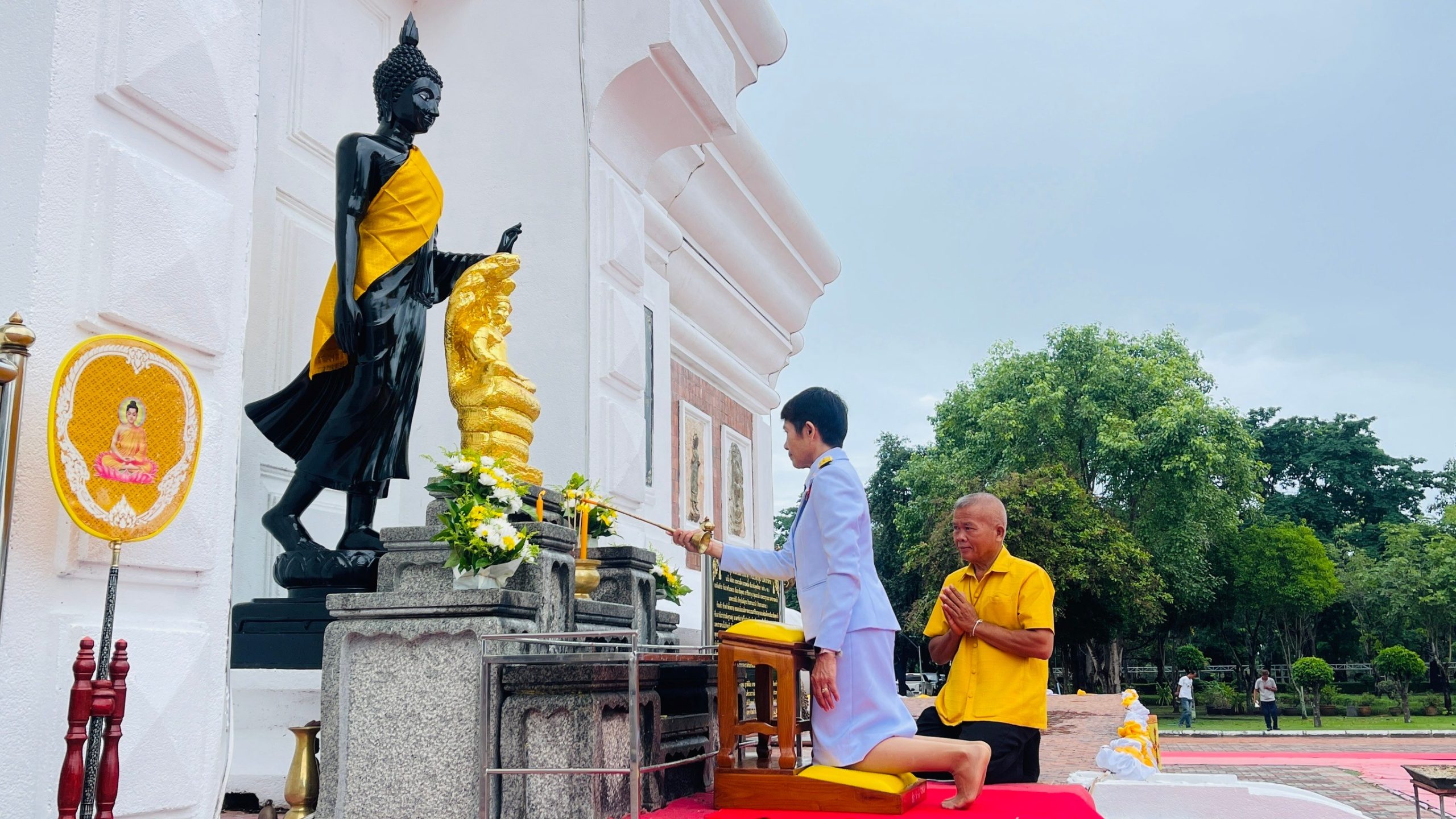๑) เวลา ๐๗.๐๐ น. พิธีทำบุญตักบาตรถวายเป็นพระราชกุศล ณ ลานหน้าพระบรมธาตุนาดูน
