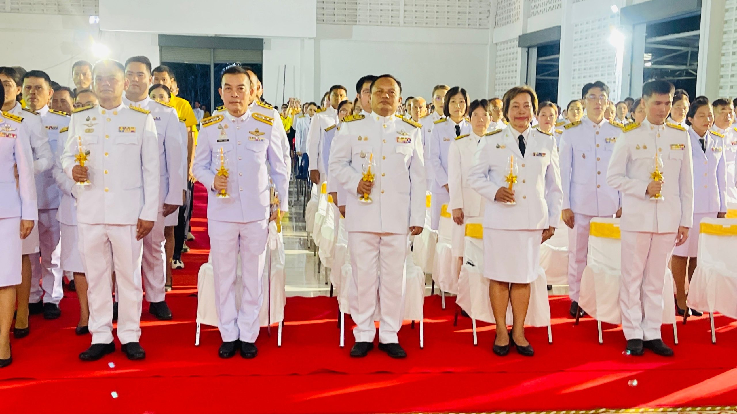 ๒) เวลา ๑๘.๓๐ น. พิธีถวายเครื่องราชสักการะ และวางพานพุ่ม และพิธีจุดเทียนถวายพระพรชัยมงคล ณ หอประชุมอำเภอนาดูน