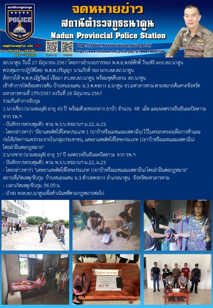 การปิดล้อมตรวจค้น บ้านหนองแคน ม.3 ต.ดงยาง อ.นาดูน จว.มหาสารคาม ตามหมายค้นศาลจังหวัดมหาสารคามที่ 199/2567