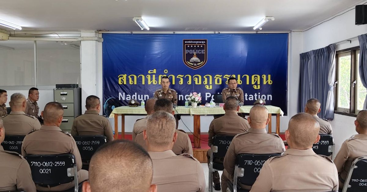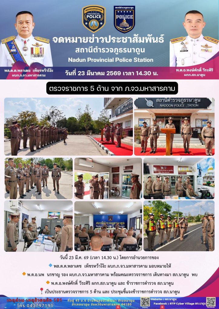 🔸พ.ต.อ.พงษ์ศักดิ์ วีระศิริ ผกก.สภ.นาดูน พร้อมข้าราชการตำรวจในสังกัด สภ.นาดูน เพื่อตรวจราชการ 5 ด้าน และ ประชุมชี้แจงข้าราชการตำรวจ สภ.นาดูน