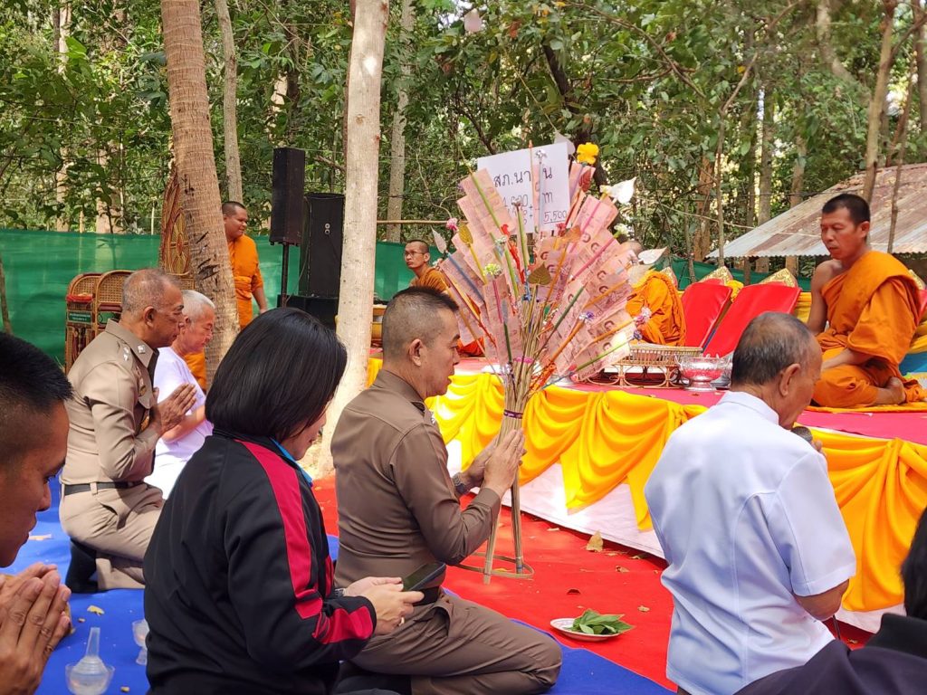 สภ.นาดูน วันนี้ (10ม.ค.68)เวลา 10.30 น. พ.ต.อ.พงษ์ศักดิ์ วีระศิริ ผกก.สภ.นาดูน พร้อมด้วย พ.ต.ท.กิตติพงศ์ เขียวหวาน รอง ผกก.ปฯ,พ.ต.ท.หญิงธารทิพย์ ทีน้ำคำ สว.อก.ฯ นำข้าราชการตำรวจในสังกัดร่วมทอดถวายต้นดอกเงินของ สภ.นาดูน เพื่อสมทบทุนตามโครงการปฎิบัติธรรม บวชชีพราหมณ์ เฉลิมพระเกียรติ พระบาทสมเด็จพระเจ้าอยู่หัว ประจำปีงบประมาณ 2568 ระหว่างวันที่ 6 – 12 มกราคม 2568 ณ วัดบ้านดงน้อย ต.พระธาตุ อ.นาดูน จ.มหาสารคาม