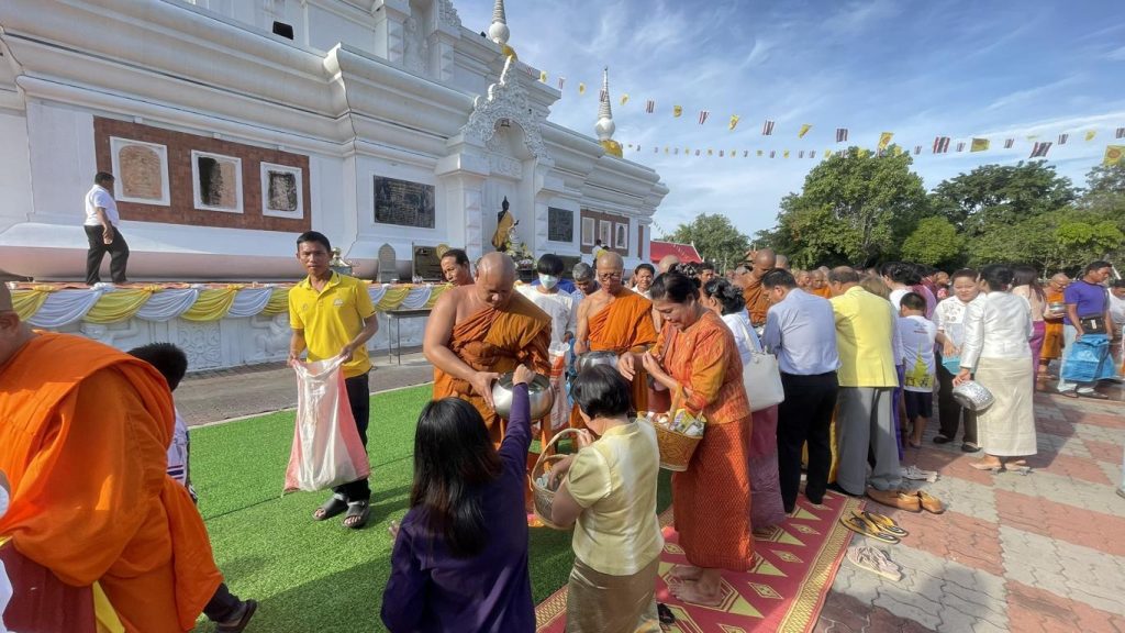 วันที่ 8 ตุลาคม 2568 เวลา 07.00 น. พ.ต.อ.พงษ์ศักดิ์ วีระศิริ ผกก.สภ.นาดูน พร้อมด้วย กต.ตร.สภ.นาดูน, หัวหน้าส่วนราชการในพื้นที่ และประชาชน ร่วมทำบุญตักบาตรข้าวสารอาหารแห้งเนื่องในวันออกพรรษา ประจำปี พ.ศ.2568 โดยมี นางอรวรรณ นุตะดี ปลัดอำเภอหัวหน้ากลุ่มงานบริหารงานปกครอง รักษาราชการแทนนายอำเภอนาดูน เป็นประธาน