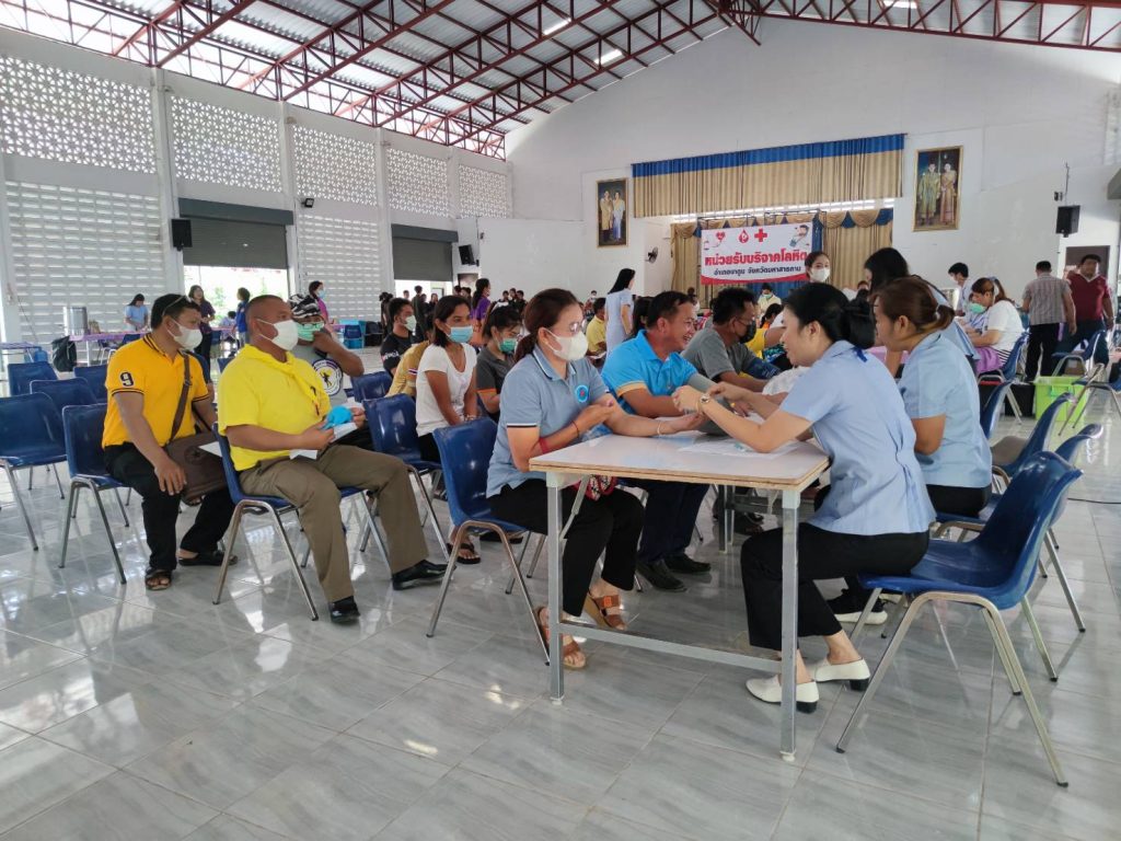 ณ หอประชุมที่ว่าการ อ.นาดูน จ.มหาสารคาม มีจำนวนตำรวจจิตอาสา สภ.นาดูน ที่สามารถบริจาคโลหิตได้ 5 นาย