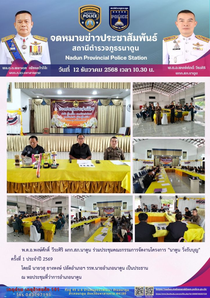 ประชุมคณะกรรมการจัดงานโครงการ “นาดูน วิ่งรับบุญ” ครั้งที่ 1 ประจำปี 2569