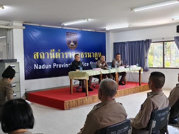 ประชุมประจำเดือน ธ.ค.68 25 ธันวาคม 2568 โดย admin / รายงานปฏิบัติราชการประจำเดือน,อำนวยการ,อก.ธ.ค.68 สภ.นาดูน วันนี้ (25 ธ.ค.68) เวลา 10.00 น. พ.ต.อ.พงษ์ศักดิ์ วีระศิริ ผกก.สภ.นาดูน, พ.ต.ท.ถาวร ยอดยรรยง รอง ผกก.ป.ฯ, พ.ต.ท.สีหนาท จันทร์เหลือง รอง ผกก.สส.ฯ, พ.ต.ท.หญิง ธารทิพย์ ทีน้ำคำ สว.อก.ฯ นำข้าราชการตำรวจในสังกัด ร่วมประชุมประจำเดือน ธ.ค.68 เพื่อแจ้งข้อสั่งการและแนวทางการปฏิบัติงาน จากผู้บังคับบัญชาระดับ ตร.,ภ.4 และ ภ.จว.มค. ให้ ข้าราชการตำรวจทุกนายทราบณ ห้องประชุมชั้น 2 สภ.นาดูน