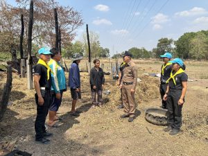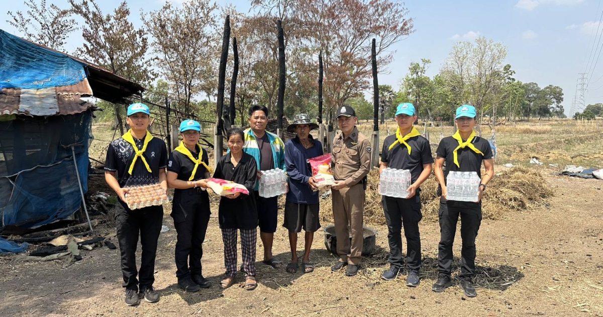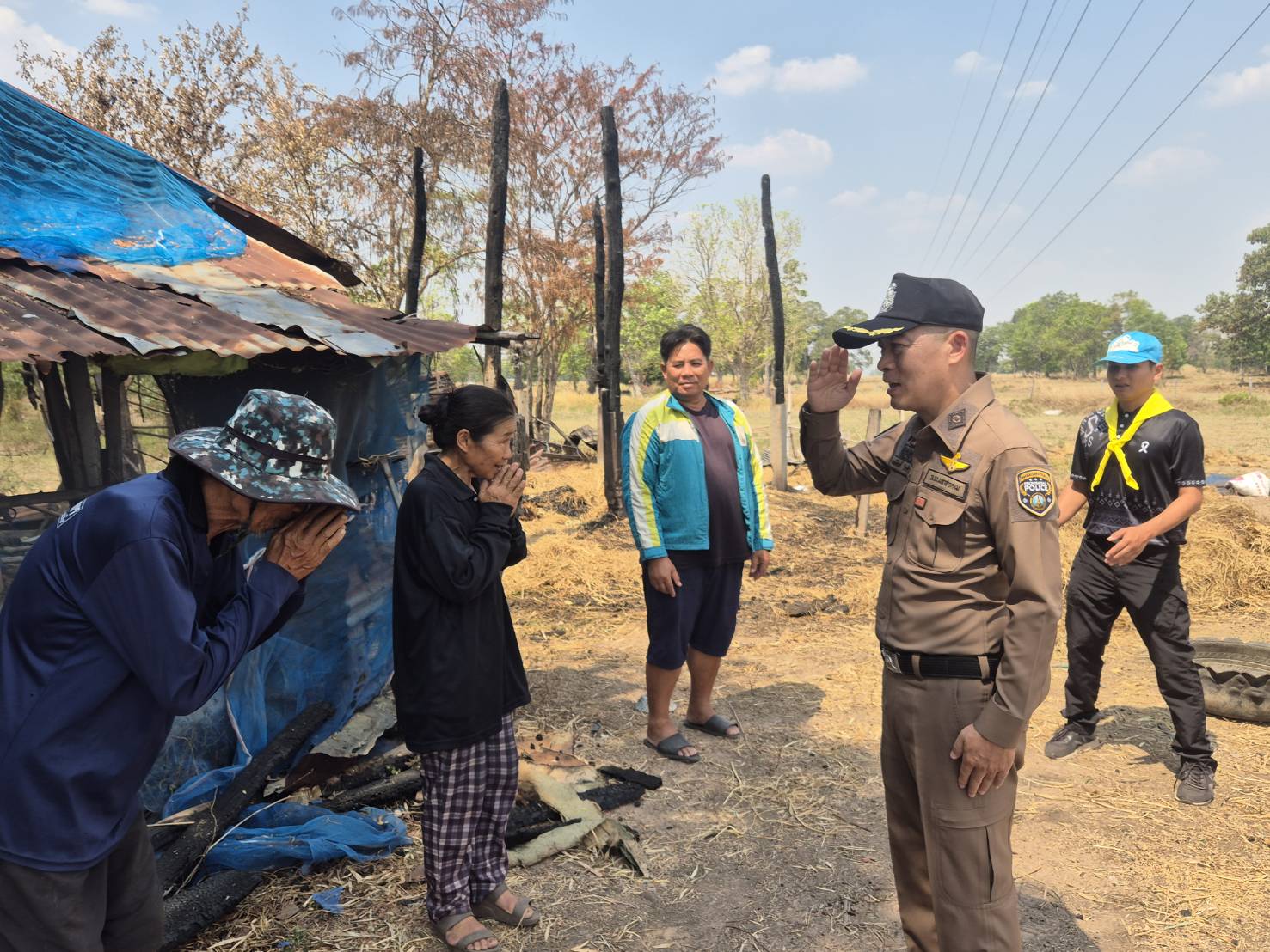 ผกก.สภ.นาดูน นำจิตอาสามอบสิ่งของเพื่อบรรเทาความเดือนร้อน เหตุเพลิงไหม้ยุ้งข้าว