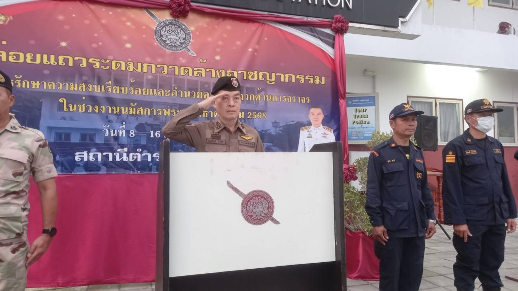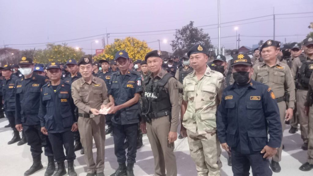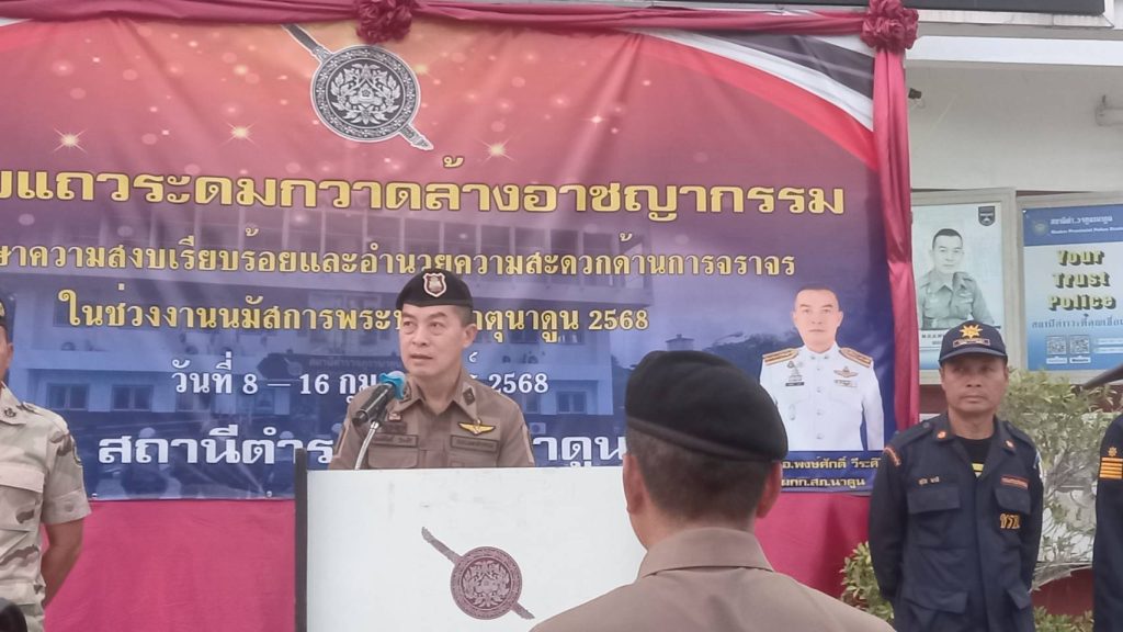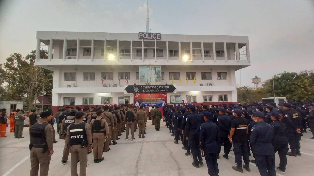 สภ.นาดูน วันนี้(16 ก.พ.2568) เวลา 18.00 น. พ.ต.อ.พงษ์ศักดิ์ วีระศิริ ผกก.สภ.นาดูน ปล่อยแถวข้าราชการตำรวจในสังกัด สภ.นาดูน , สภ.พยัคฆภูมิพิสัย, สภ.กำพี้ , สภ.นาข่า , สภ.ราษฎร์เจริญ , สภ.ปอพาน, กก.สส.ภ.จว.มหาสารคาม, ชุด EOD ภ.จว.มหาสารคาม , จนท.ฝ่ายปกครอง , ชรบ. และอาสาสมัครกู้ภัยนาดูน-ยางนคร ร่วมปล่อยแถวออก ว.4 รักษาความสงบเรียนร้อยงานนมัสการพระบรมธาตุนาดูน ประจำปี 2568 (คืนที่9) และมอบรางวัลให้กับชุดจับกุม ณ ลานหน้า สภ.นาดูน