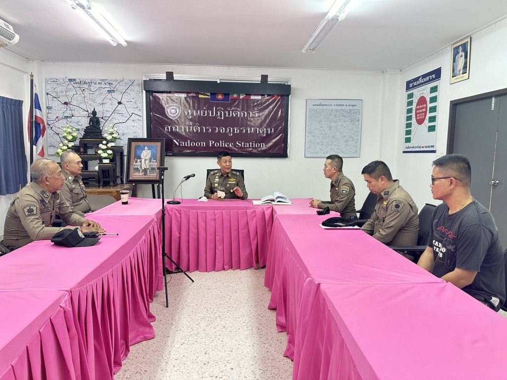 สภ.นาดูน วันนี้ (6 มี.ค.2567) เวลา 13.00 น. พล.ต.ต.พรชัย ชลอเดช ผบก.ภ.จว.มหาสารคาม พร้อมด้วย พ.ต.อ.จักราวุธ จงศิริ รอง ผบก.ภ.จว.มหาสารคาม เดินทางมาตรวจเยี่ยม สภ.นาดูน พบ พ.ต.อ.พงษ์ศักดิ์ วีระศิริ ผกก.สภ.นาดูน , พ.ต.ท.กิตติพงษ์ เขียวหวาน รอง ผกก.ป.ฯ, พ.ต.ท.ศักดิ์สิทธิ์ ศิริประภานนท์กุล รอง ผกก.(สอบสวน)ฯ , พ.ต.ท.ปริญญา นามภักดิ์ รอง ผกก.สส.ฯ พร้อมข้าราชการตำรวจในสังกัดให้การต้อนรับ ได้มอบนโยบายการปฏิบัติหน้าที่