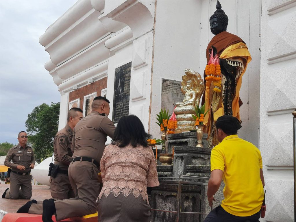 วันที่ 24 ก.พ. 68 เวลา 14.20 น. พล.ต.ต.พลาเดช เพ็ชรหว้าโง๊ะ ผบก.ภ.จว.มหาสารคาม และประธานแม่บ้านตำรวจ ภ.จว.มหาสารคาม มาสักการะและห่มผ้าพระบรมธาตุนาดูน