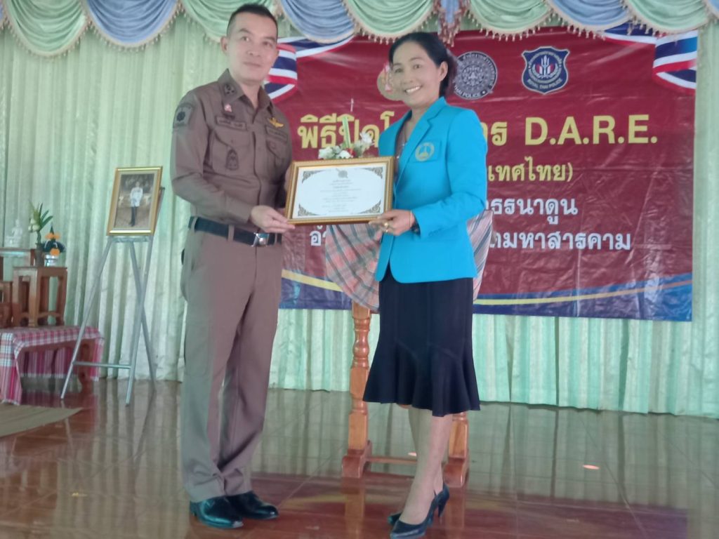 สภ.นาดูน วันนี้ (6 มี.ค.67) เวลา 09.30 น. พ.ต.อ.พงษ์ศักดิ์ วีระศิริ ผกก.สภ.นาดูน ประธานในพิธีฯ พร้อมด้วย ร.ต.ท.สุรัตน์ อัปติกานัง รอง สว.(จร.) สภ.นาดูน ครูตำรวจแดร์, คณะครู นักเรียนโรงเรียนบ้านโกทา ร่วมพิธีปิดโครงการ D.A.R.E. (D.A.R.E. ประเทศไทย) ของสถานีตำรวจภูธรนาดูน จำนวน 51 คน ณ โรงเรียนบ้านโกทา ต.พระธาตุ อ.นาดูน จ.มหาสารคาม