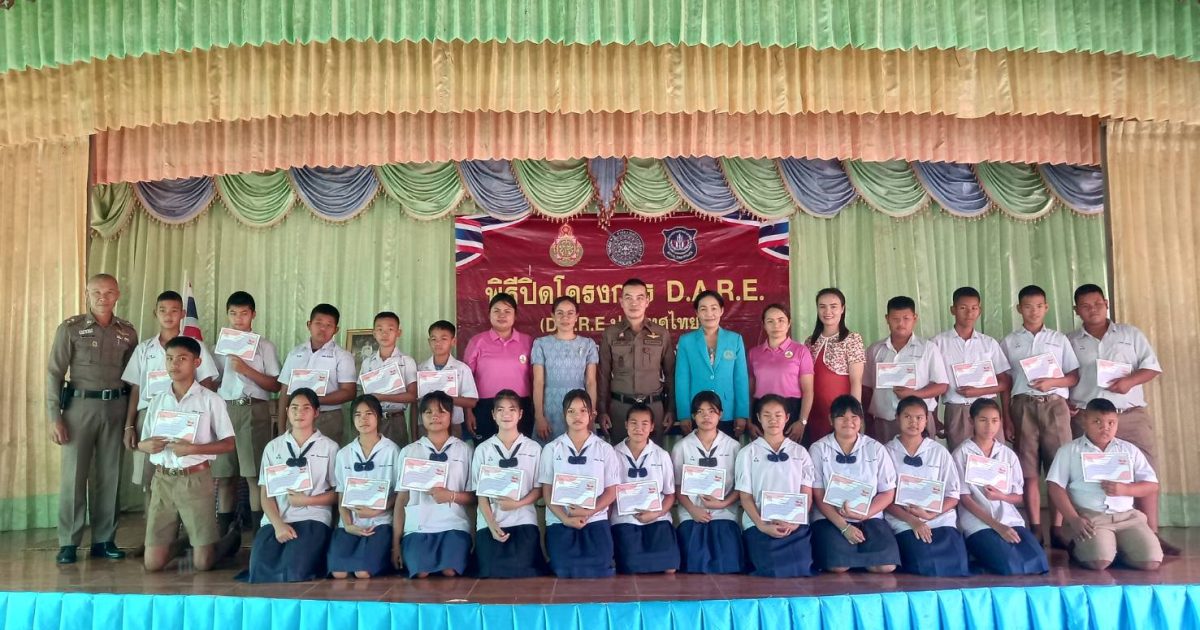 สภ.นาดูน วันนี้ (6 มี.ค.67) เวลา 09.30 น. พ.ต.อ.พงษ์ศักดิ์ วีระศิริ ผกก.สภ.นาดูน ประธานในพิธีฯ พร้อมด้วย ร.ต.ท.สุรัตน์ อัปติกานัง รอง สว.(จร.) สภ.นาดูน ครูตำรวจแดร์, คณะครู นักเรียนโรงเรียนบ้านโกทา ร่วมพิธีปิดโครงการ D.A.R.E. (D.A.R.E. ประเทศไทย) ของสถานีตำรวจภูธรนาดูน จำนวน 51 คน ณ โรงเรียนบ้านโกทา ต.พระธาตุ อ.นาดูน จ.มหาสารคาม