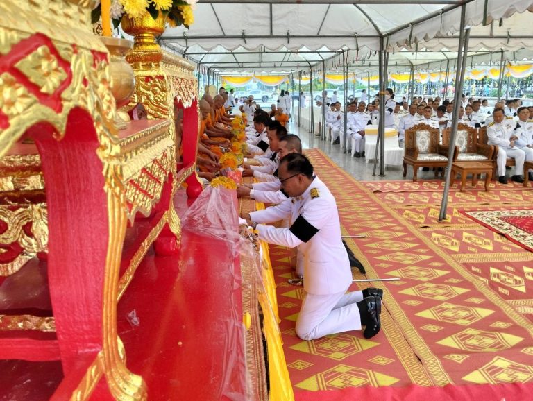 สภ.นาดูน วันนี้ (5 ธ.ค.2568) เวลา 07.30 น. พ.ต.อ.พงษ์ศักดิ์ วีระศิริ ผกก.สภ.นาดูน พ.ต.ท.ศักดิ์สิทธิ์ ศิริประภานนท์กุล รอง ผกก.(สอบสวน)ฯ, กต.ตร.สภ.นาดูน, หัวหน้าส่วนราชการ รัฐวิสาหกิจ ประชาชนในพื้นที่ ร่วมพิธีเจริญพุทธมนต์และทำบุญตักบาตร ถวายพระราชกุศล เนื่องในวันคล้ายวันพระบรมราชสมภพพระบาทสมเด็จพระบรมชนกาธิเบศร มหาภูมิพลอดุลยเดชมหาราช บรมนาถบพิตร วันชาติ และวันพ่อแห่งชาติ 5 ธันวาคม 2568