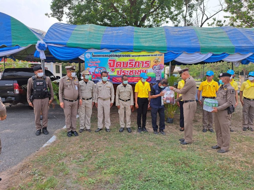 พ.ต.อ.อัครวินต์ สุคนธวิท รอง ผบก.ภ.จว.มหาสารคาม ออกตรวจเยี่ยมจุดตรวจ จุดบริการประชาชนช่วงเทศกาลสงกรานต์ 2566 หน้า อบต.พระธาตุ