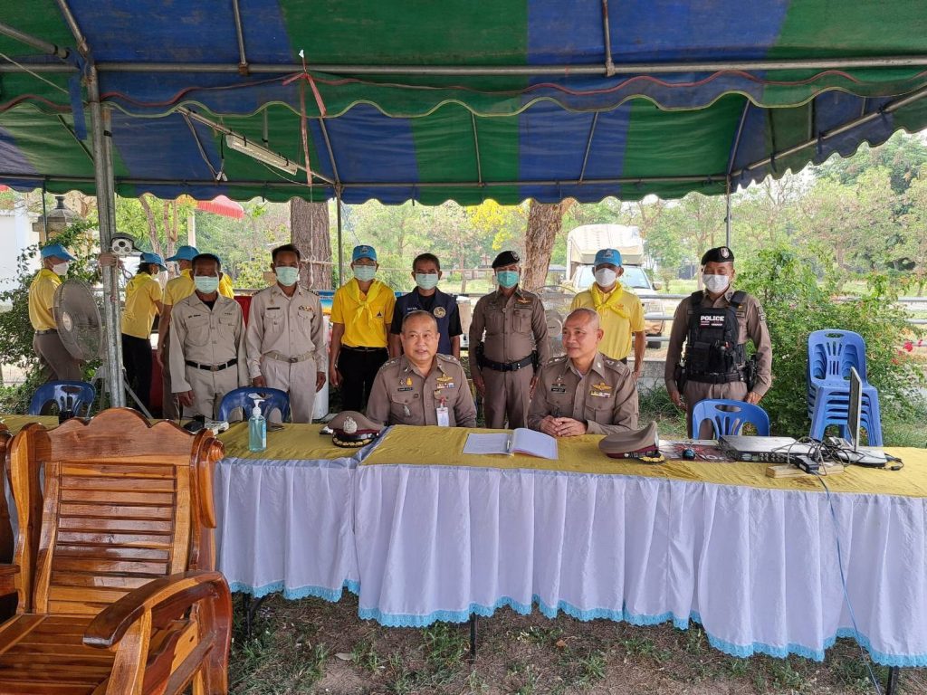 พบ พ.ต.อ.ดำรงศักดิ์ แก้วสมนึก ผกก.สภ.นาดูน, ร.ต.อ.ชูวิต โลคลัง ร้อยเวร 2-0, จนท.ตำรวจ, ฝ่ายปกครอง, อพปร., อสม. อยู่ปฏิบัติหน้าที่ และมอบอาหารและน้ำดื่ม ให้กับ จนท.ผู้ปฏิบัติหน้าที่ประจำจุดตรวจ จุดบริการประชาชน