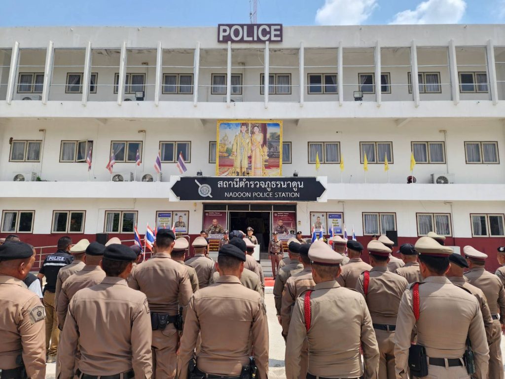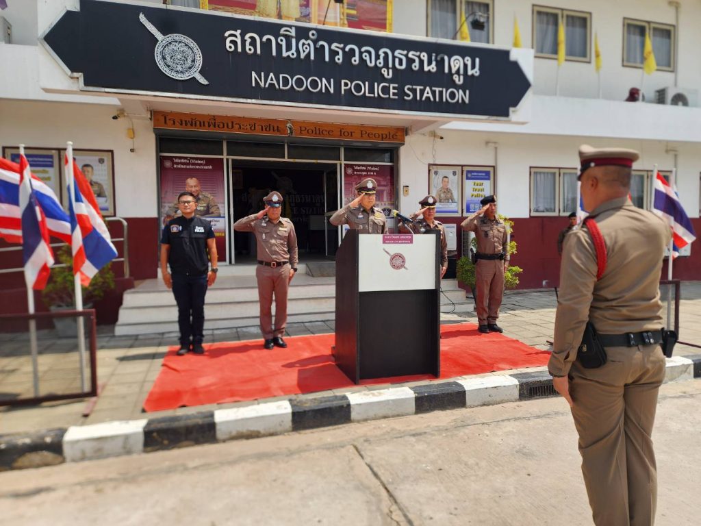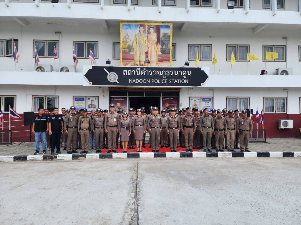 พบ พ.ต.อ.พงษ์ศักดิ์ วีระศิริ ผกก.สภ.นาดูน พร้อมด้วยข้าราชการตำรวจในสังกัดร่วมให้การต้อนรับ การตรวจประเมินฯ เพื่อให้ประชาชนเกิดความพึงพอใจกับการปฏิบัติงานของเจ้าหน้าที่ตำรวจ โดยเฉพาะอย่างยิ่งในด้านการบริการบนสถานีตำรวจการบริการเบ็ดเสร็จ ณ จุดเดียว (One Stop Service) การบริหารจัดการศูนย์รับแจ้งเหตุของสถานีตำรวจการประชาสัมพันธ์ช่องทางการร้องเรียนหรือการแจ้งเหตุของประชาชน