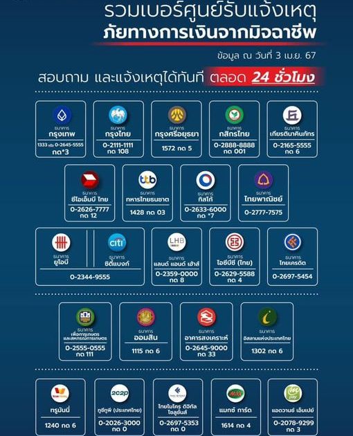 รวมเบอร์แจ้งเหตุ จาก #แบงค์ชาติ สามารถสอบถามและแจ้งเหตุได้ทันที ตลอด 24 ชั่วโมง เราไม่รู้หรอกว่า #มิจฉาชีพ มันจะมาในรูปแบบไหน หากเอะใจ ให้รีบแจ้งทันที นะคะ