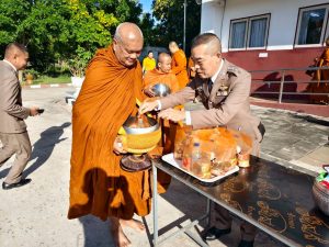 – เวลา 07.30 น. ตักบาตร พระสงฆ์ จำนวน 9 รูป หน้า สภ.