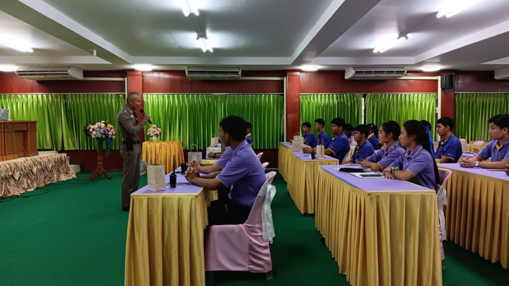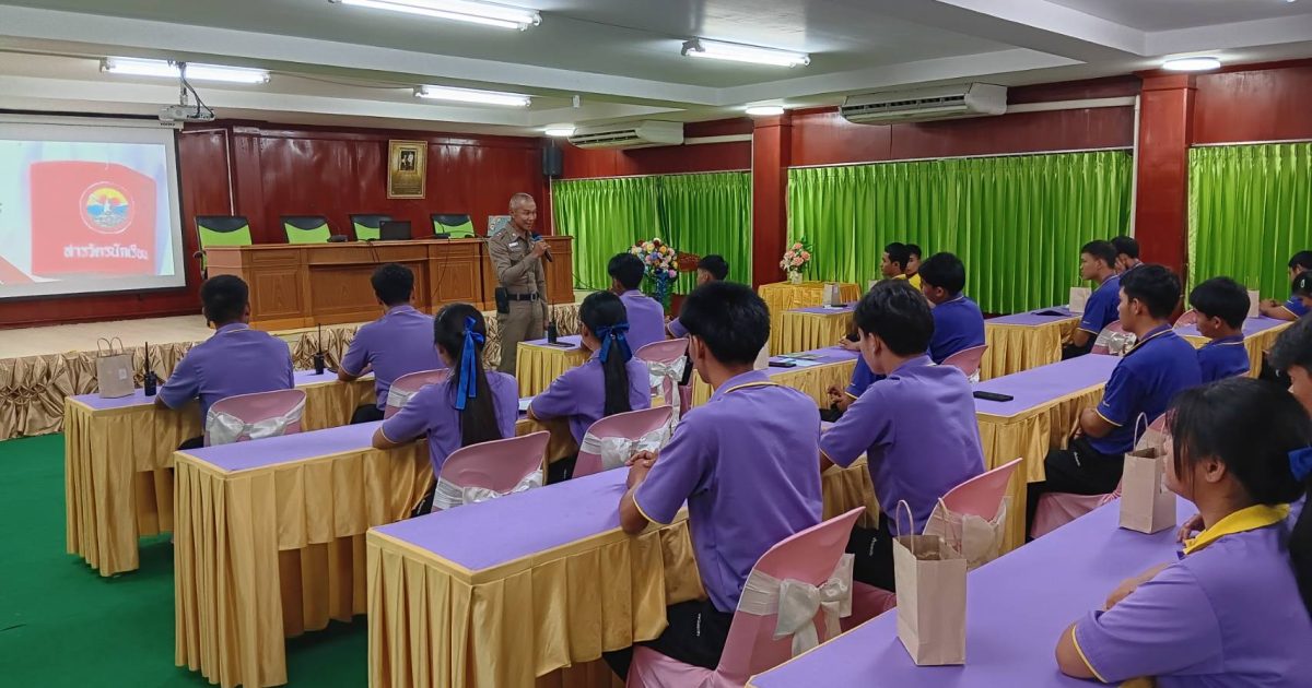 มอบหมายให้ ร.ต.ท.สุรัตน์ อัปติกานัง รอง สว.(จร.) สภ.นาดูน พร้อมด้วย จ.ส.ต.หญิงพันธุ์ธิช แสนกิตติสิริสกุล ผบ.หมู่(ป.) สภ.นาดูน เป็นวิทยากรอบรมให้ความรู้แก่สารวัตรนักเรียน รร.นาดูนประชาสรรพ์