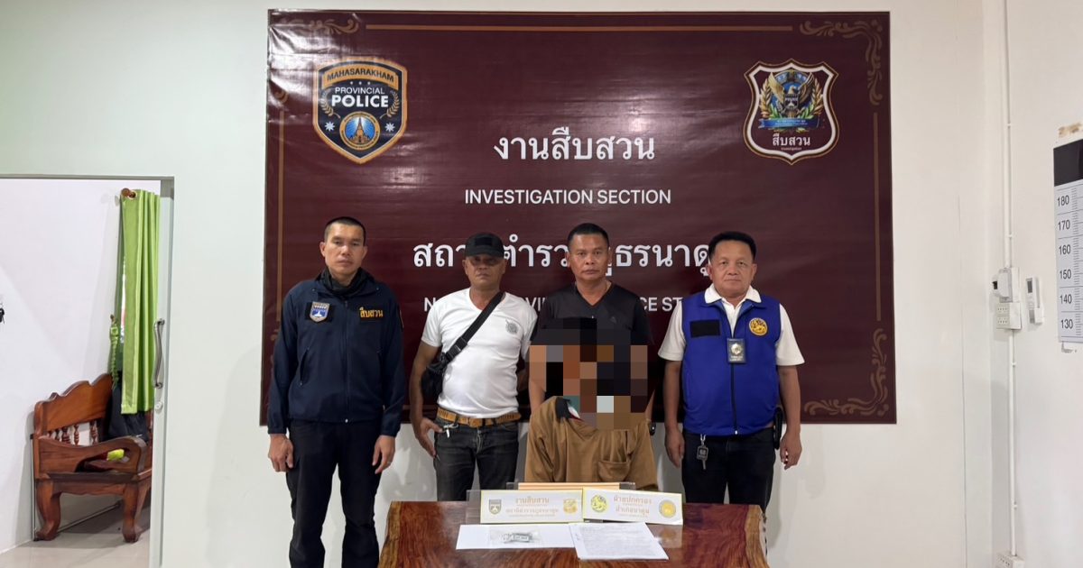 สถานที่เกิดเหตุ/จับกุม : กระท่อมนาไม่มีเลขที่ด้านทิศเหนือบ้านหนองป้าน ต.หนองคู อ.นาดูน จ.มหาสารคาม