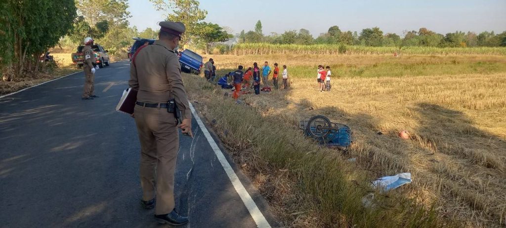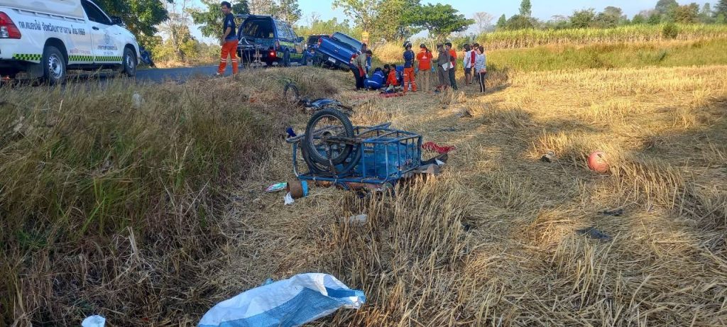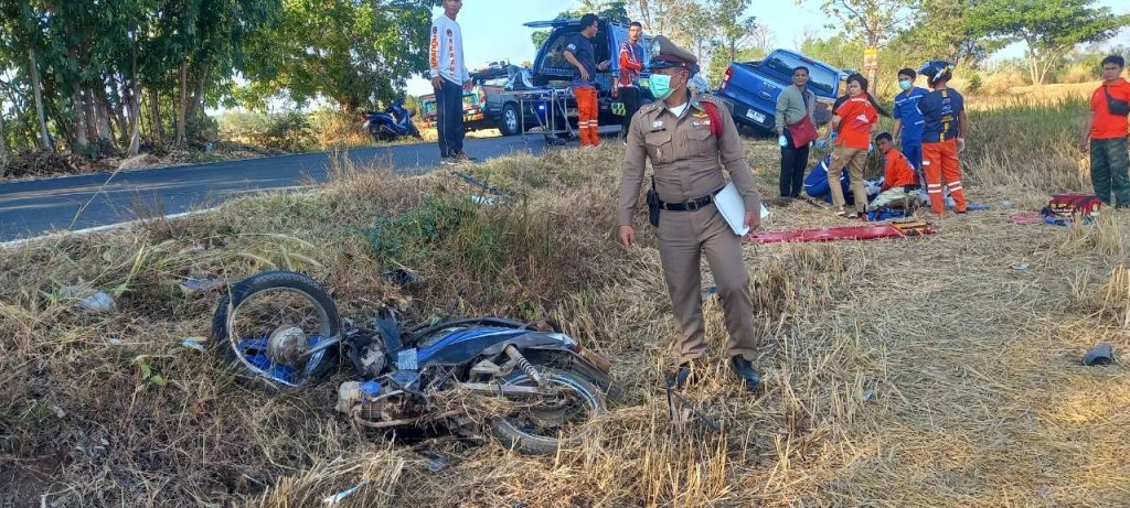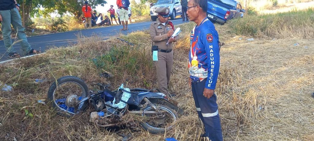 วันที่ 1 มกราคม 2568 เวลา 14.00 น. ร.ต.อ.วิทยา ละมุล รอง สว.(สอบสวน) สภ.นาดูน พร้อมด้วย เวรจราจร, อาสาสมัครกู้ภัย ว.4 เหตุ ว.40 ถนน บ.หนองเม็ก – บ้านโนนตาล ต.ดงยาง อ.นาดูน (กระบะ + จยย.พ่วงข้าง) มีผู้ได้รับบาดเจ็บสาหัส 4 ราย (เสียชีวิตที่ รพ. 2 ราย)