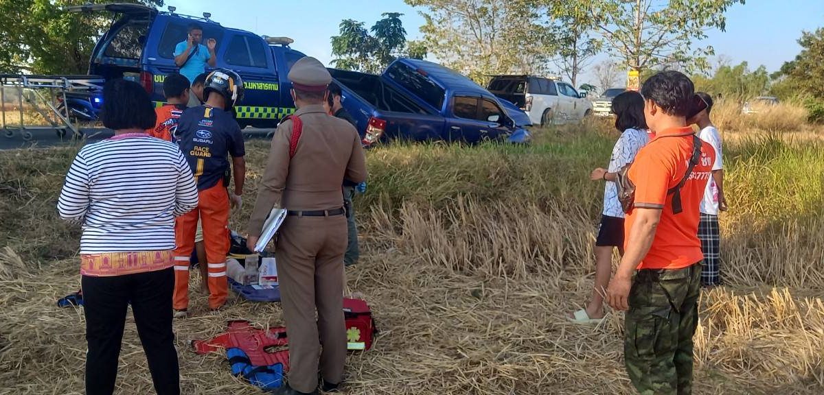 วันที่ 1 มกราคม 2568 เวลา 14.00 น. ร.ต.อ.วิทยา ละมุล รอง สว.(สอบสวน) สภ.นาดูน พร้อมด้วย เวรจราจร, อาสาสมัครกู้ภัย ว.4 เหตุ ว.40 ถนน บ.หนองเม็ก – บ้านโนนตาล ต.ดงยาง อ.นาดูน (กระบะ + จยย.พ่วงข้าง) มีผู้ได้รับบาดเจ็บสาหัส 4 ราย (เสียชีวิตที่ รพ. 2 ราย)