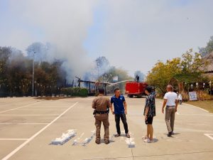 ร.ต.ท.เฉลิม ศรีระบุตร รอง สว.(จร.)ฯ ร้อยเวร 2-0, สายตรวจรถยนต์, สายตรวจ จยย. ว.4 เหตุเพลิงไหม้ อาคารสำนักงานของเลาะดอนนอนนาโฮมสเตย์ ที่ บ้านหนองโง้ง ม.2 ต.นาดูน อ.นาดูน จ.มหาสารคาม