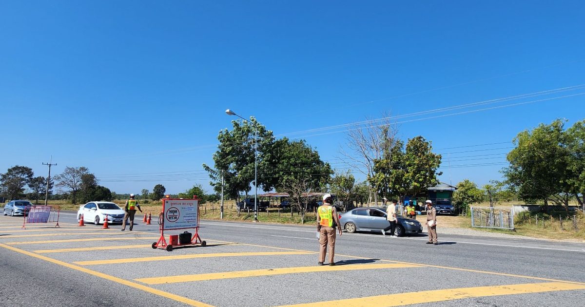 ร้อยตำรวจเอก ประมุข ขันทอง รอง สวป.สภ.นาดูน พร้อม ว30 ว4 ว43 กวดขันวินัยจราจร เพื่อป้องกันและลดอุบัติเหตุ ปากทาง บ.ลิ้นฟ้า ต.หนองไผ่ อ.นาดูน จ.มหาสารคาม