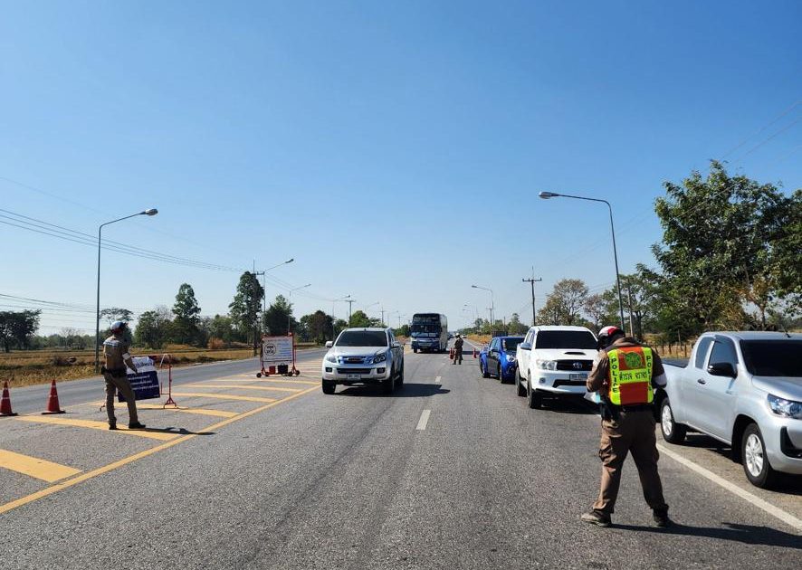ร้อยตำรวจเอก ประมุข ขันทอง รอง สวป.สภ.นาดูน พร้อม ว30 ว4 ว43 กวดขันวินัยจราจร เพื่อป้องกันและลดอุบัติเหตุ ปากทาง บ.ลิ้นฟ้า ต.หนองไผ่ อ.นาดูน จ.มหาสารคาม