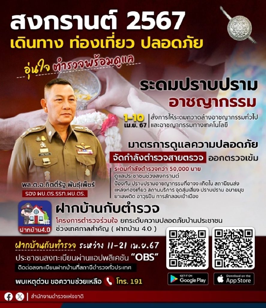 สงกรานต์ 2567 เดินทาง ท่องเที่ยว ปลอดภัย อุ่นใจตำรวจพร้อมดูแล