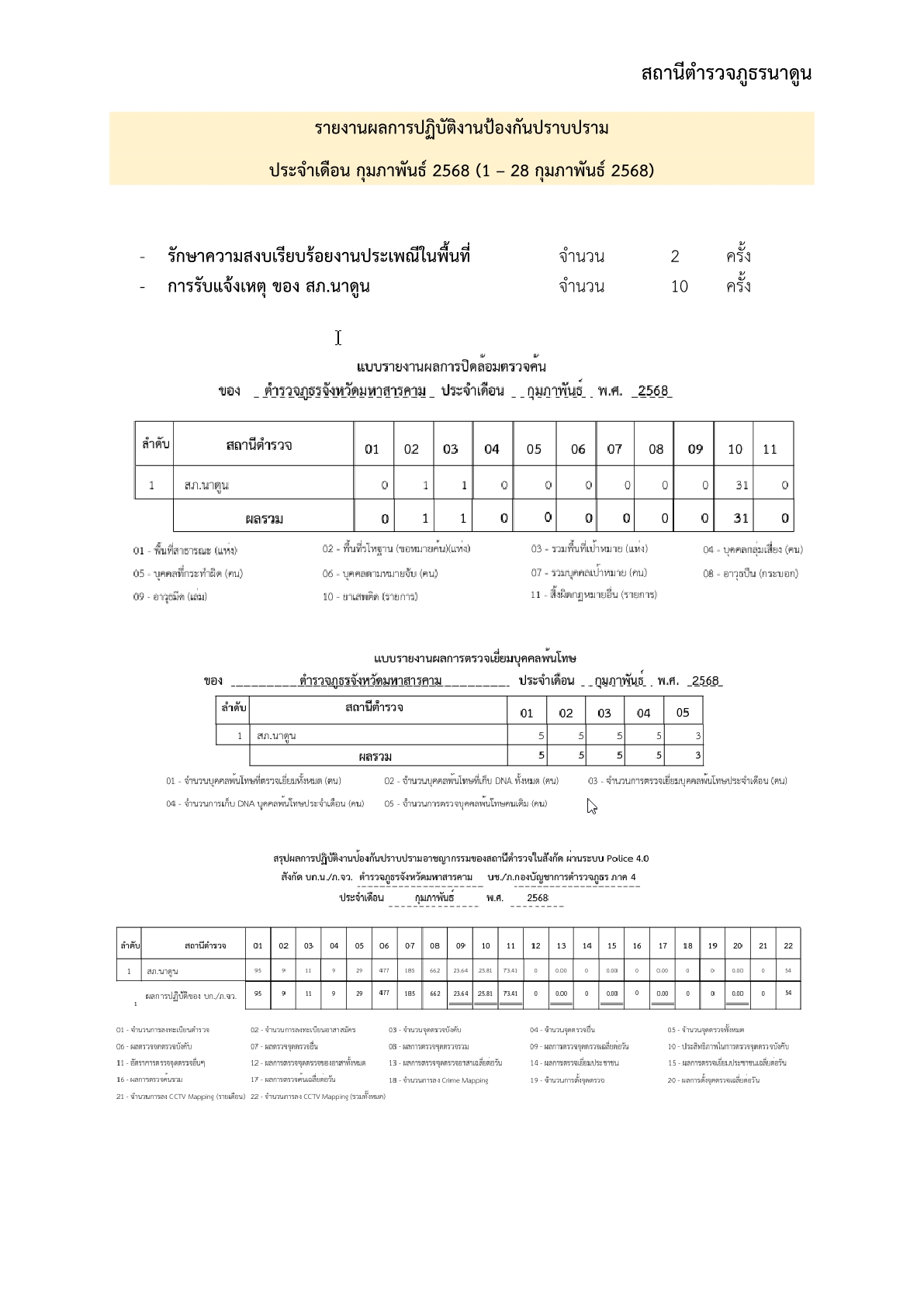 สรุปผลการปฏิบัติงานป้องกันปราบปราม เดือน กุมภาพันธ์ 2568 28 กุมภาพันธ์ 2568 โดย admin / ไม่มีหมวดหมู่