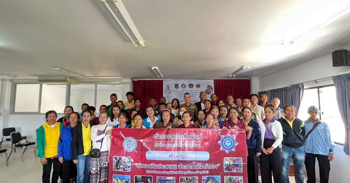 พ.ต.อ.พงษ์ศักดิ์ วีระศิริ ผกก.สภ.นาดูน ,พ.ต.ท.กิตติพงศ์ เขียวหวาน รอง ผกก.ป.ฯ พร้อมชุด กต.ตร.สภ.นาดูน, ชมส.สภ.นาดูน ดำเนินการอบรมโครงการสร้างเครือข่ายการมีส่วนร่วมของประชาชนในการแก้ไขปัญหาความเดือดร้อนของประชาชนในระดับสถานีตำรวจเพื่อสนับสนุนการป้องกันอาชญากรรม ประจำปีงบประมาณ พ.ศ.2568 ณ ห้องประชุมชั้น2 สภ.นาดูน โดยมี กำนัน/ผู้ใหญ่บ้าน/ผู้นำชุมชน/ อสม.และ ประชาชน จำนวน 50 คน เข้าร่วมอบรมตามโครงการฯ