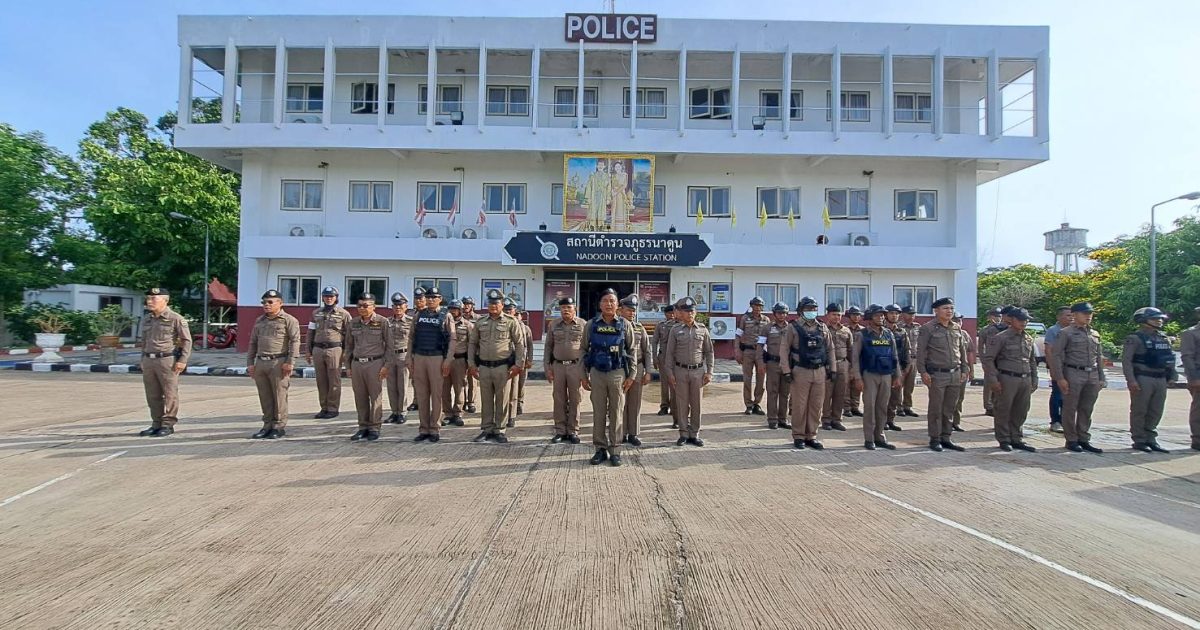 สภ.นาดูน วันที่ 18 มิถุนายน 2567 เวลา 08.00 น. พ.ต.อ.พงษ์ศักดิ์ วีระศิริ ผกก.สภ.นาดูน , พ.ต.ท.กิตติพงศ์ เขียวหวาน รอง ผกก.ป.สภ.นาดูน นำข้าราชการตำรวจ สภ.นาดูน เคารพธงชาติ สวดมนต์ไหว้พระ กล่าวอุดมคติตำรวจ คำปฏิญาณตน วิสัยทัศน์ของผู้บังคับบัญชา ประชุมชี้แจงภารกิจ ข้อราชการจากผู้บังคับบัญชาและกำชับการปฏิบัติหน้าที่ ฝึกทบทวนยุทธวิธีตำรวจ ณ ลานหน้า สภ.นาดูน