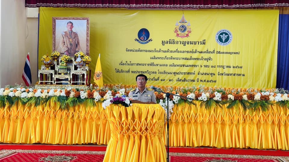 พ.ต.อ.พงษ์ศักดิ์ วีระศิริ ผกก.สภ.นาดูน มอบหมายให้ พ.ต.ท.ศักดิ์สิทธิ์ ศิริประภานนท์กุล รอง ผกก.(สอบสวน) สภ.นาดูนร่วมพิธีเปิดโครงการคัดกรองมะเร็งเต้านมโดยเครื่องเอกซเรย์เต้านมเคลื่อนที่ mammogram