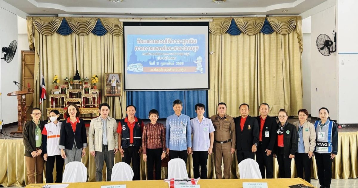 พ.ต.ท.ศักดิ์สิทธิ์ ศิริประภานนท์กุล รอง ผกก.(สอบสวน) สภ.นาดูน พร้อมด้วยชุดจราจร ร่วมเปิดโครงการซ้อมแผนตอบโต้ภาวะฉุกเฉินทางการแพทย์และสาธารณสุข กรณีงานนมัสการพระบรมธาตุนาดูน ประจำปี 2568