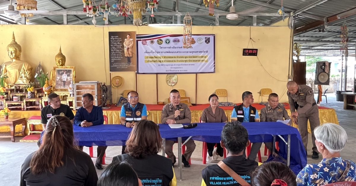 พร้อมด้วยชุดปฏิบัติการตำบลยั่งยืนฯ สภ.นาดูน ร่วมกับ เจ้าหน้าที่ฝ่ายปกครอง, เจ้าหน้าที่สาธารณะสุข, ผู้ใหญ่บ้าน ผู้ช่วยผู้ใหญ่บ้าน,อสม.คณะกรรมการหมู่บ้าน,คณะกรรมการคุ้ม