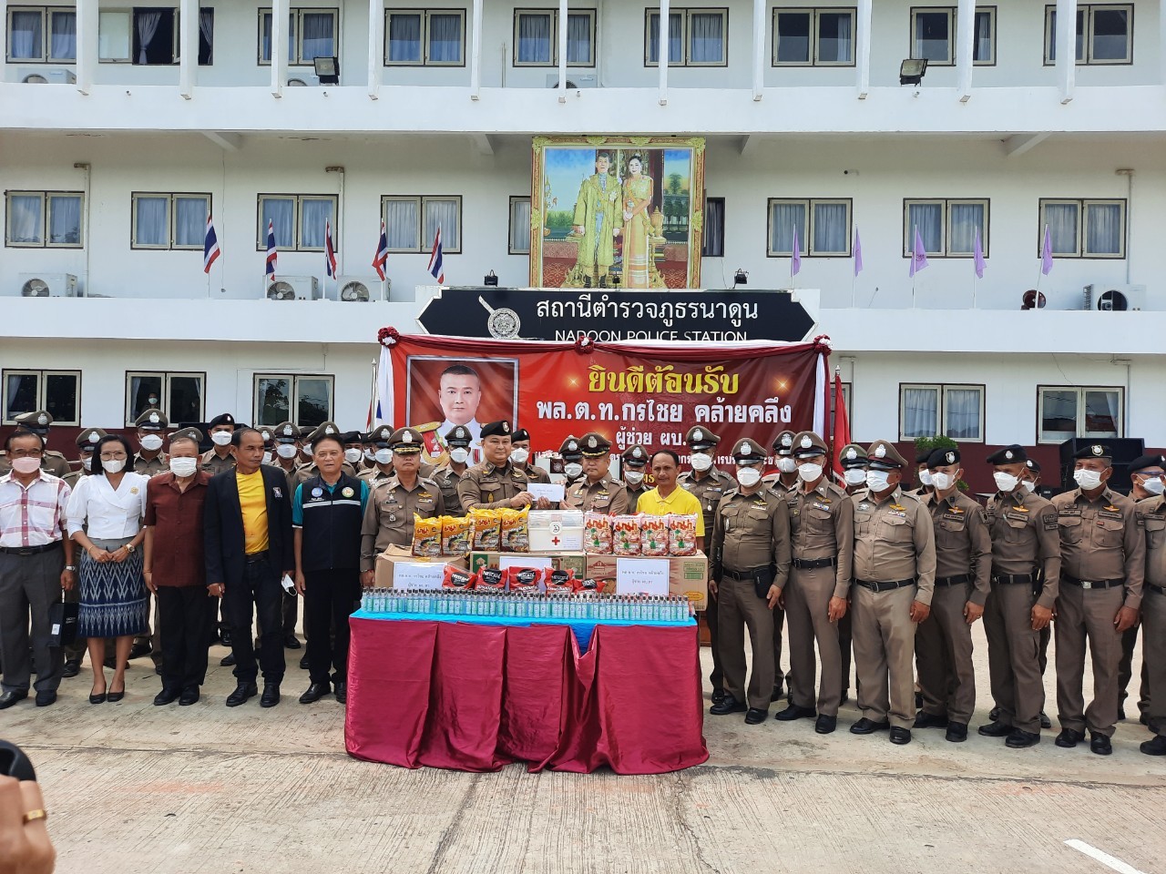 พ.ต.อ.ดำรงศักดิ์ แก้วสมนึก ผกก.สภ.นาดูน พ.ต.ท.ดร.เดช นิมิตร รอง ผกก.สส.สภ.นาดูน พร้อมด้วยข้าราชการตำ
