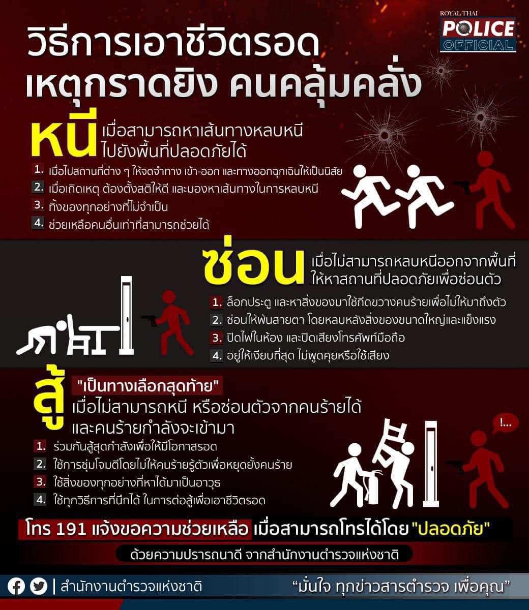 หากประชาชนมีเบาะแส พบเห็น โปรดแจ้ง โทร.191 ทั้งนี้ขอให้ประชาชน ระมัดระวังอย่าตื่นตระหนกและปฏิบัติตา
