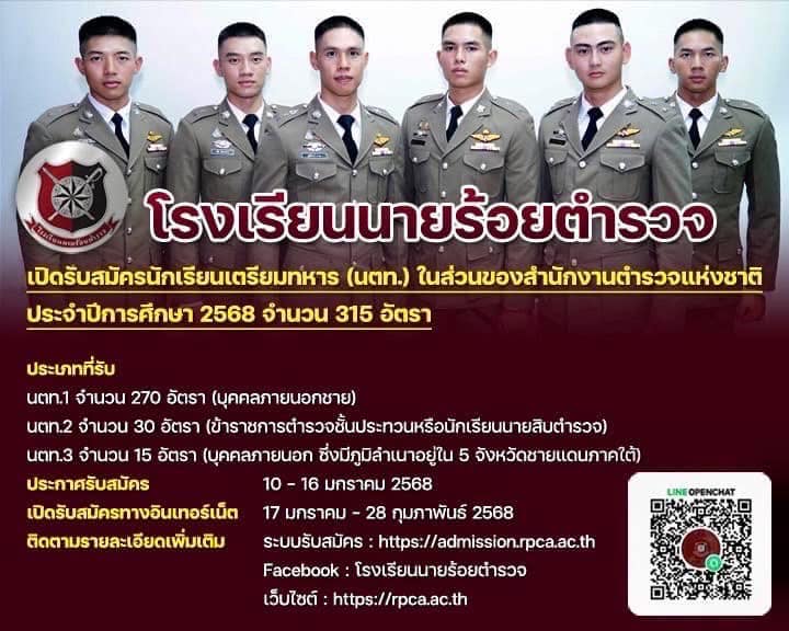 โรงเรียนนายร้อยตำรวจ เปิดรับสมัครนักเรียนเตรียมทหาร (นตท.) ในส่วนของสำนักงานตำรวจแห่งชาติ ประจำปีการ