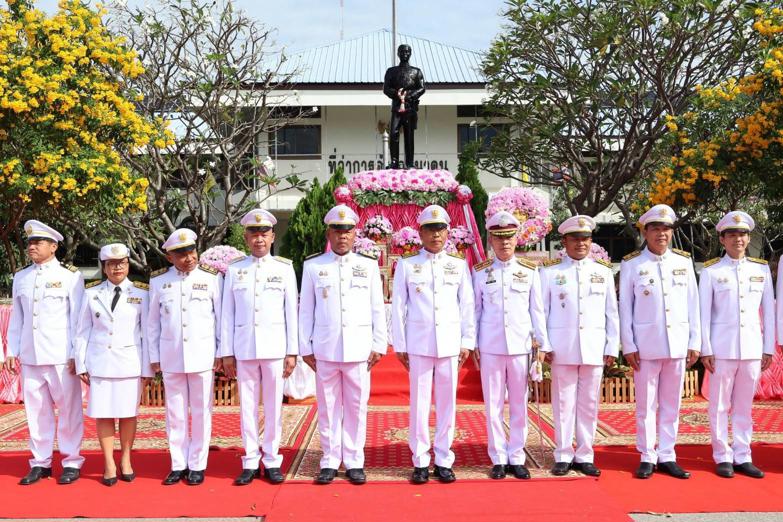 พ.ต.อ.พงษ์ศักดิ์ วีระศิริ ผกก.สภ.นาดูน พร้อมด้วย ข้าราชการตำรวจ สภ.นาดูน ร่วมประกอบพิธีวางพวงมาลา น้