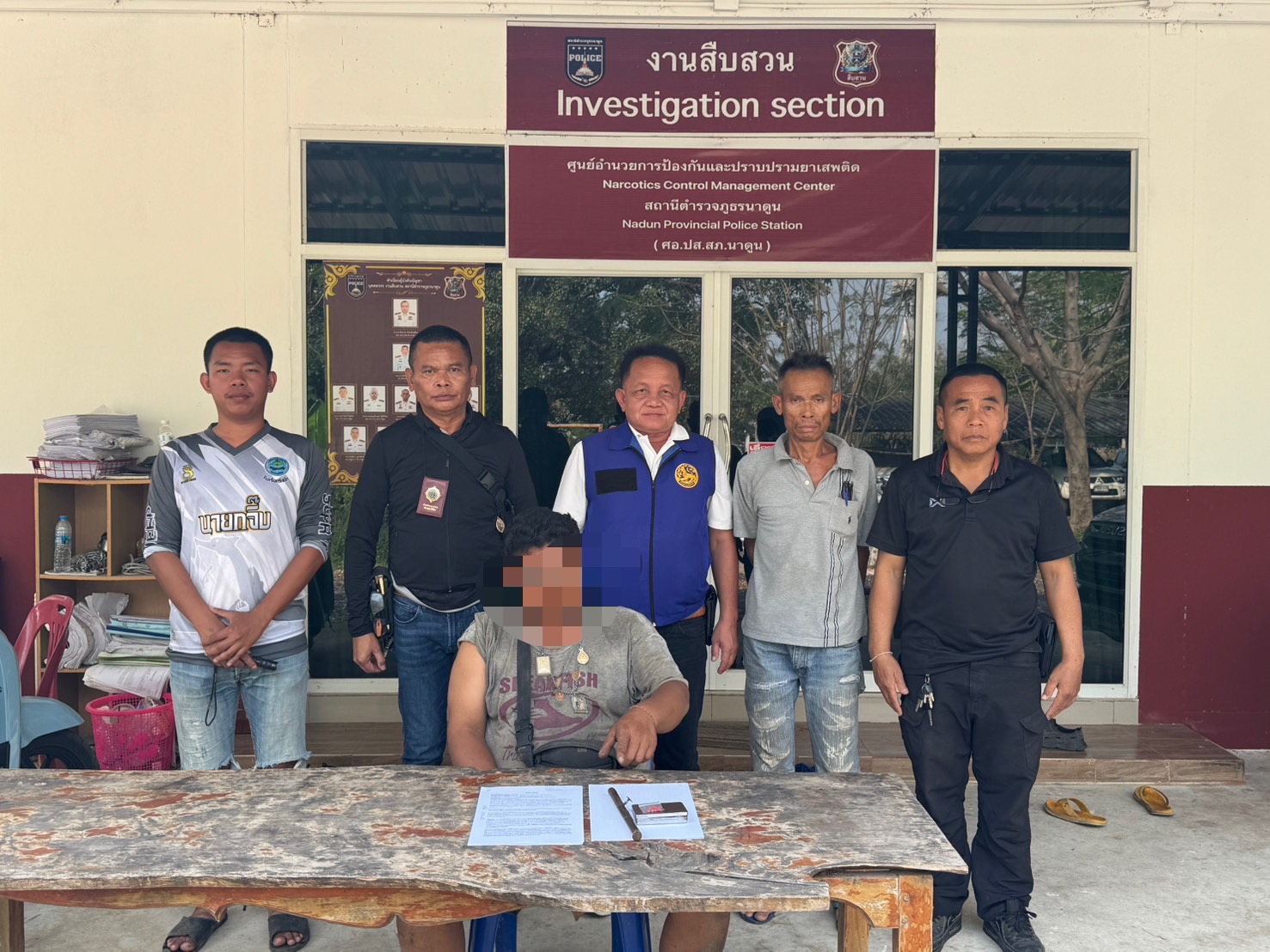 พ.ต.อ.พงษ์ศักดิ์ วีระศิริ ผกก.สภ.นาดูน– ควบคุมการปฏิบัติโดยพ.ต.ต.นิติธร อรัญชัย สว.สส.สภ.นาดูน
