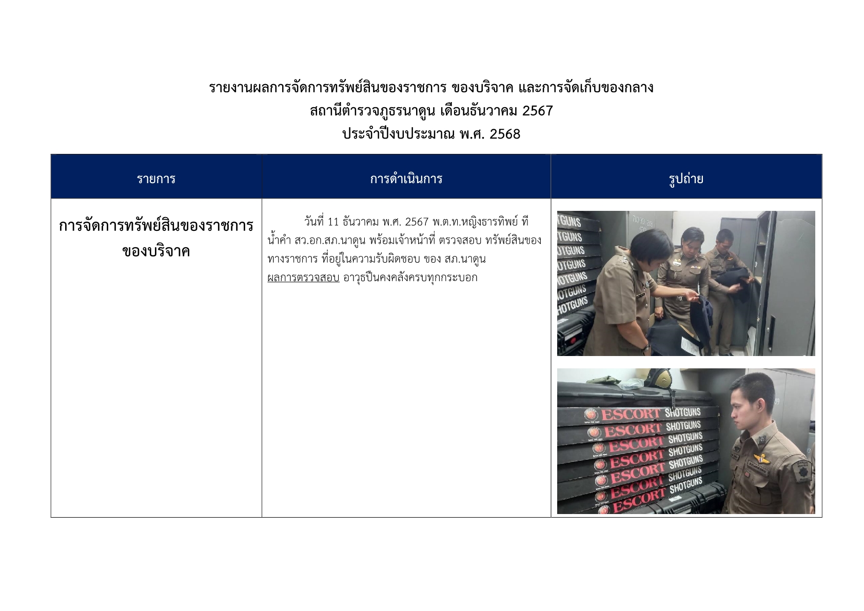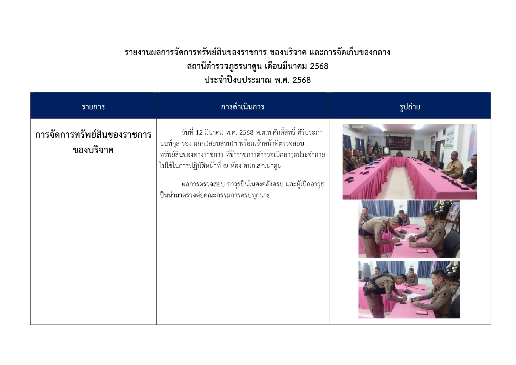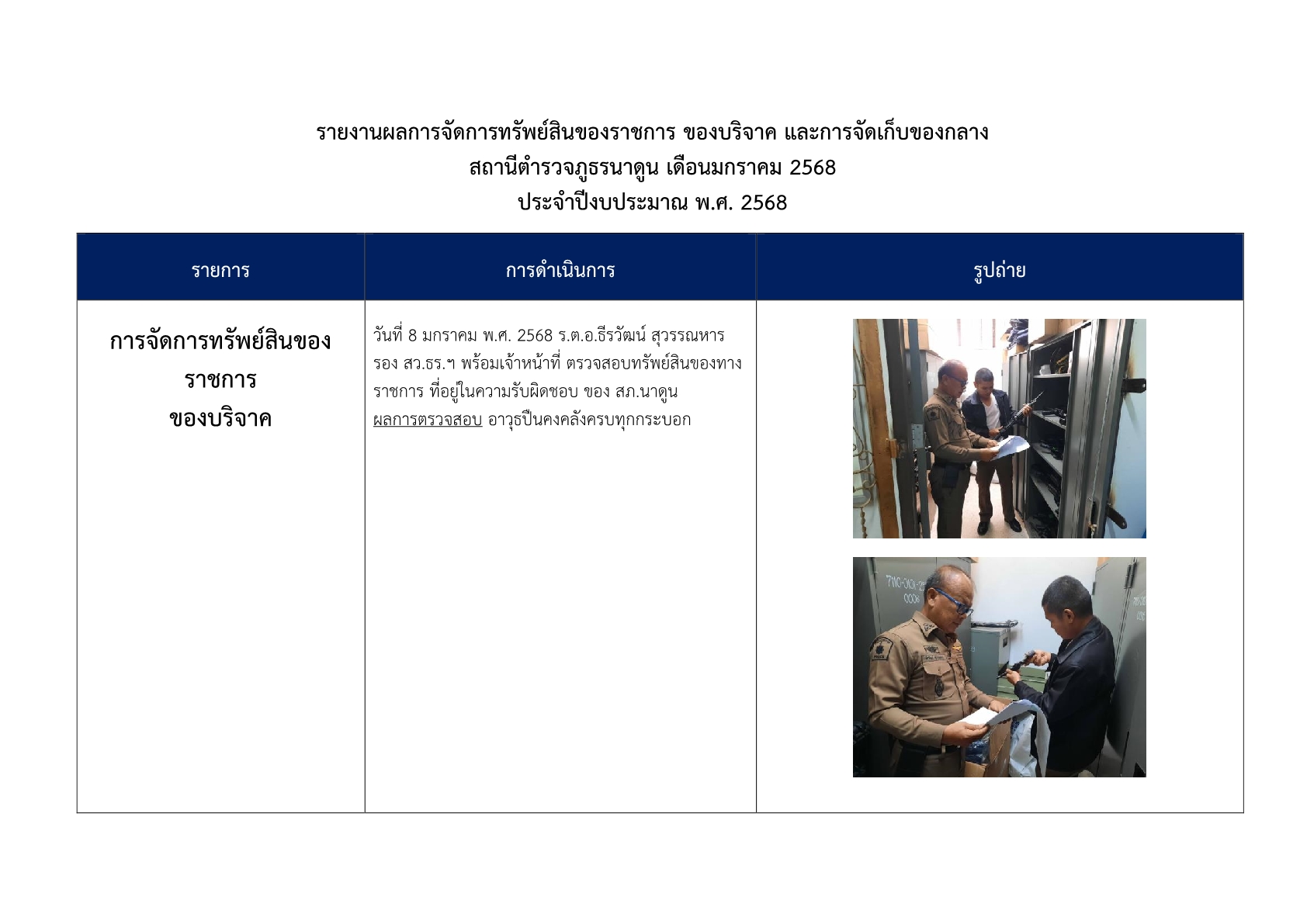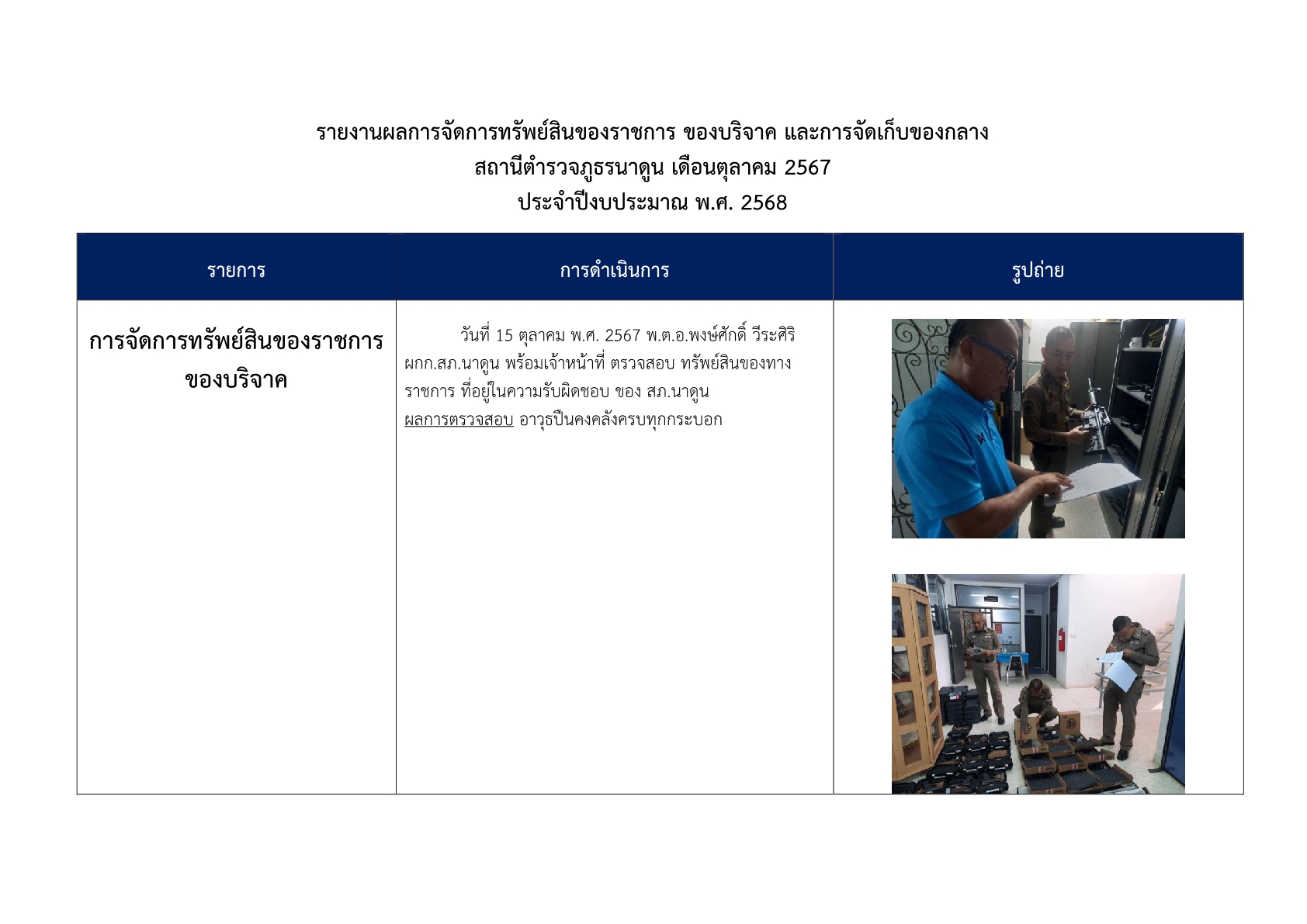 การตรวจสอบ ดูแลรักษาทรัพย์สินของทางราชการ ของบริจาค และการจัดเก็บของกลาง