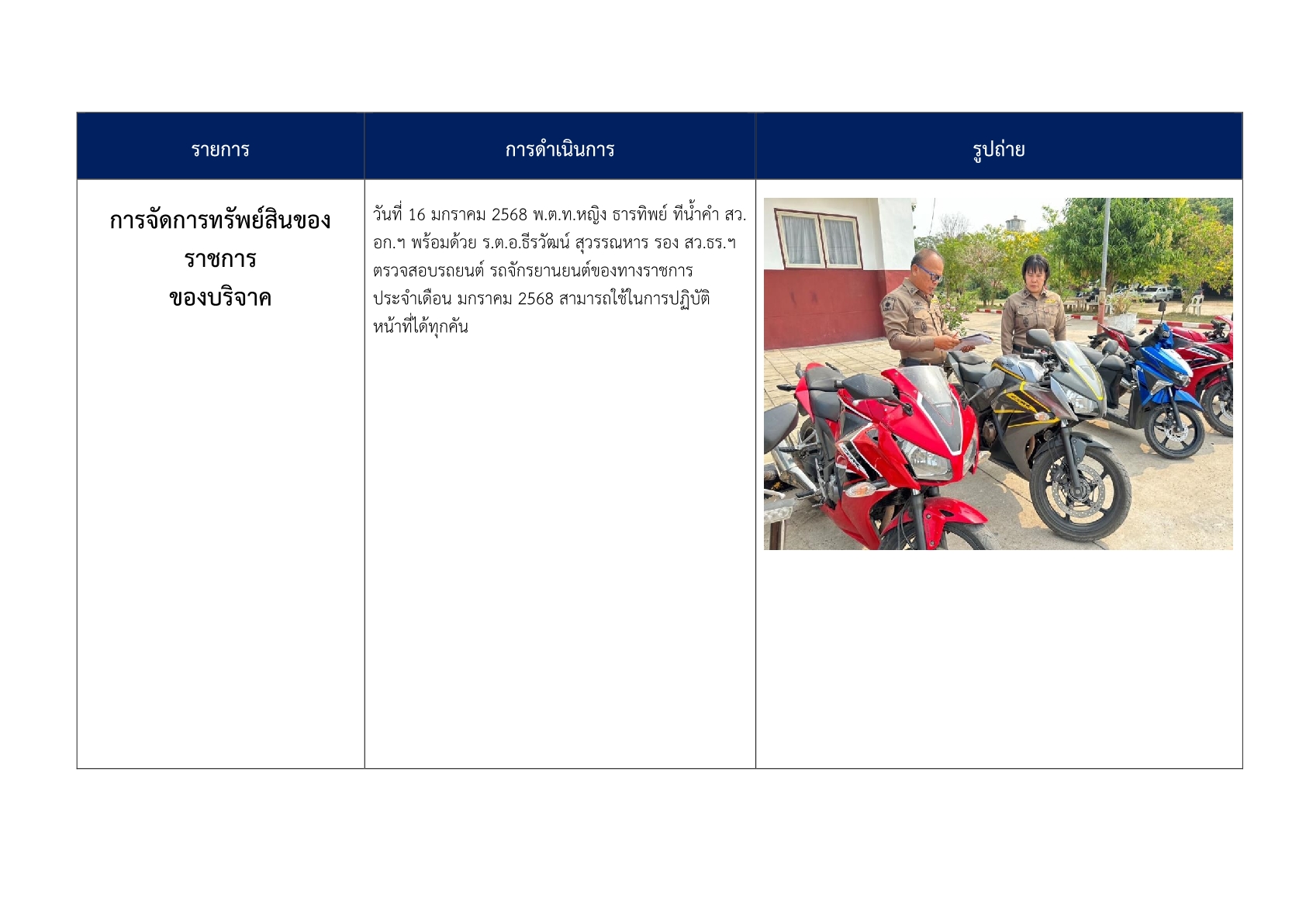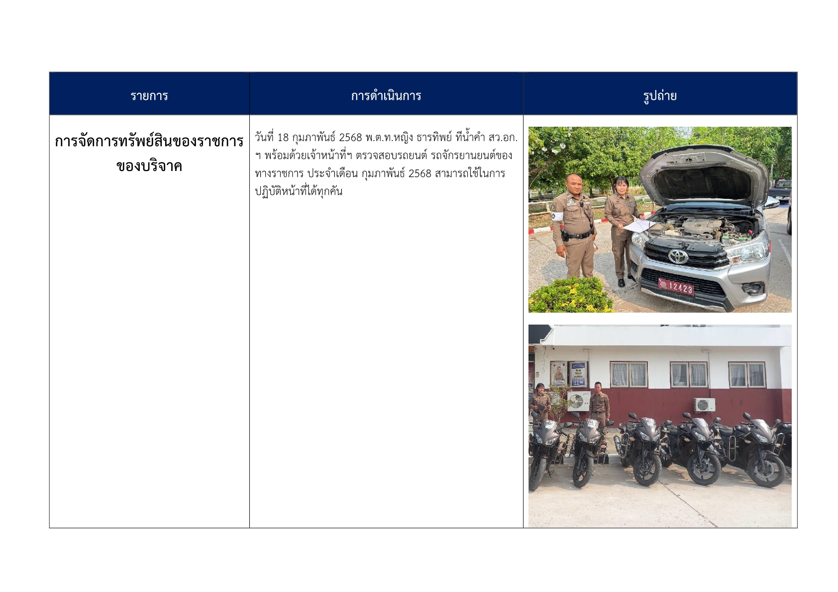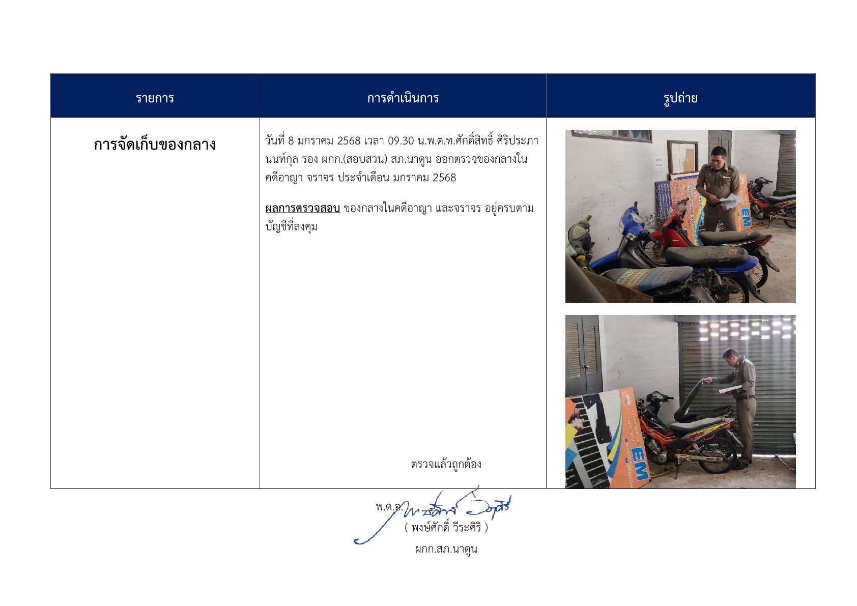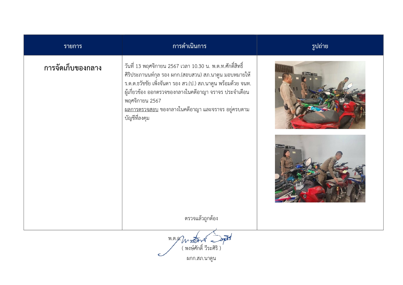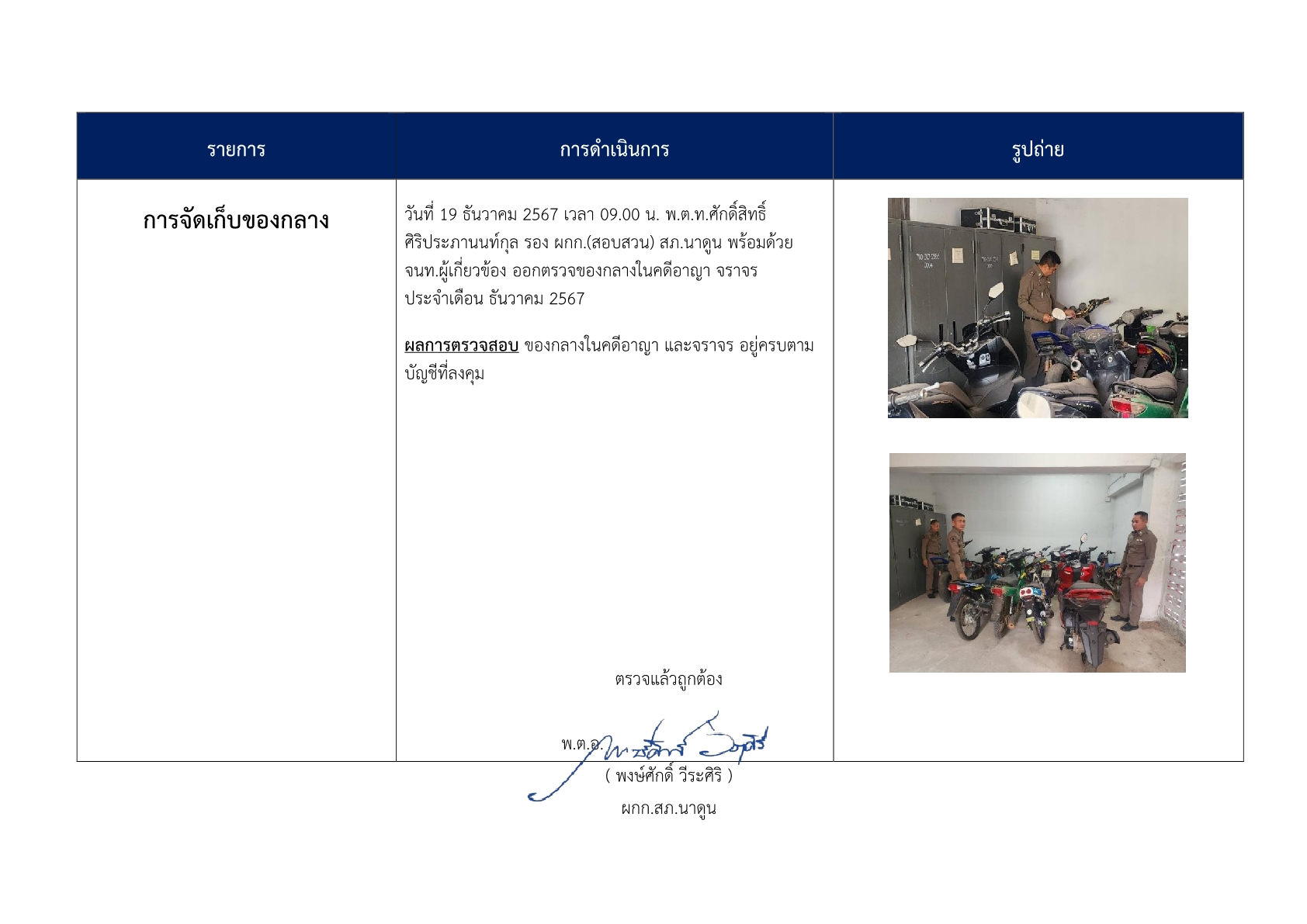 การตรวจสอบ ดูแลรักษาทรัพย์สินของทางราชการ ของบริจาค และการจัดเก็บของกลาง