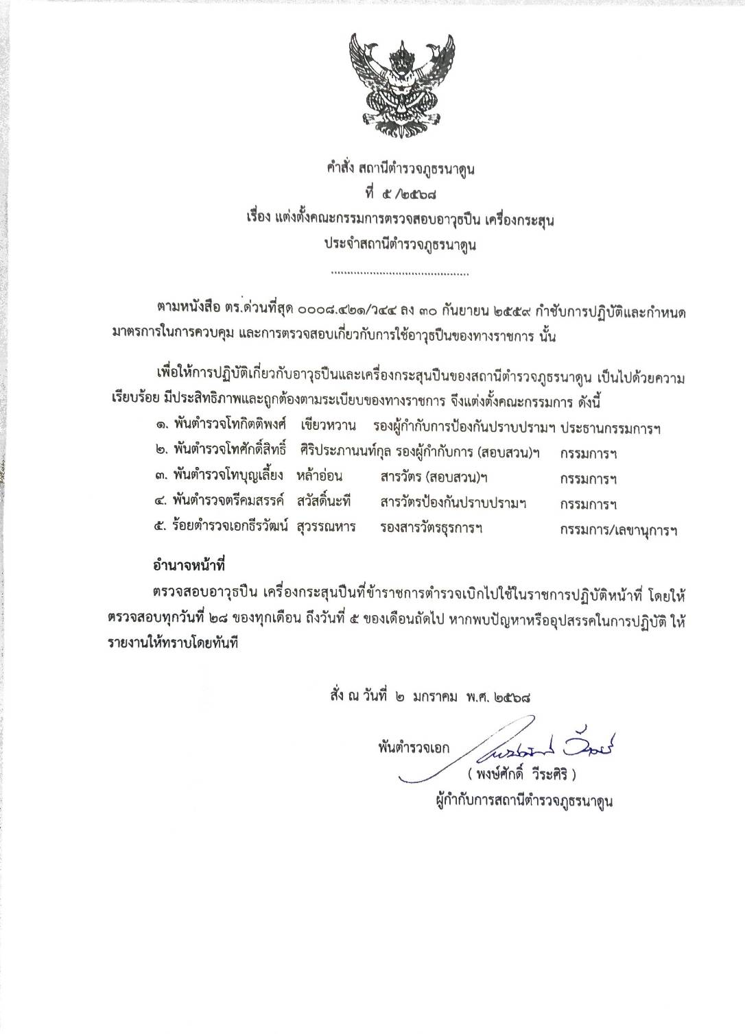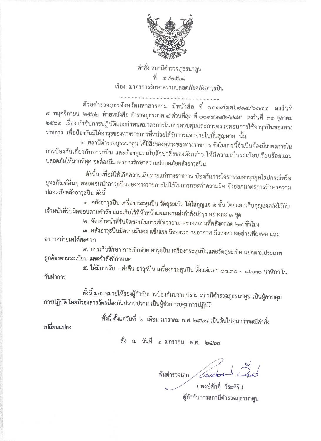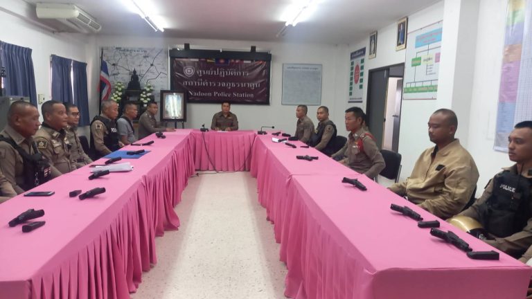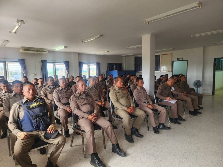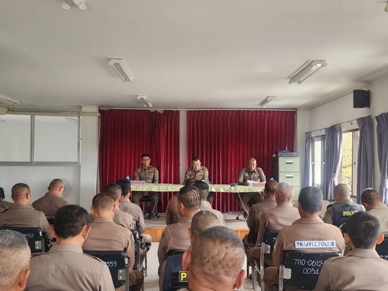 พ.ต.อ.พงษ์ศักดิ์ วีระศิริ ผกก.สภ.นาดูน ประชุมชี้แจงข้อราชการประจำเดือน กุมภาพันธ์ 2568