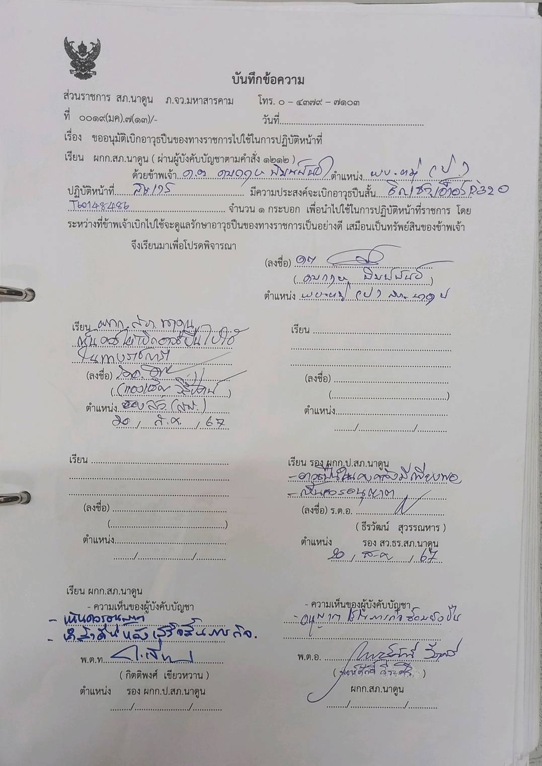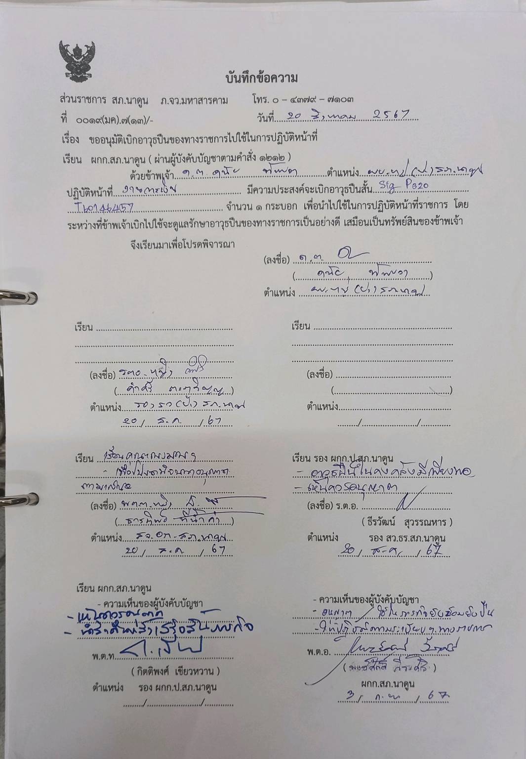 สมุดควบคุมการเบิกจ่ายอาวุธปืน และเอกสารเบิกอาวุธปืน