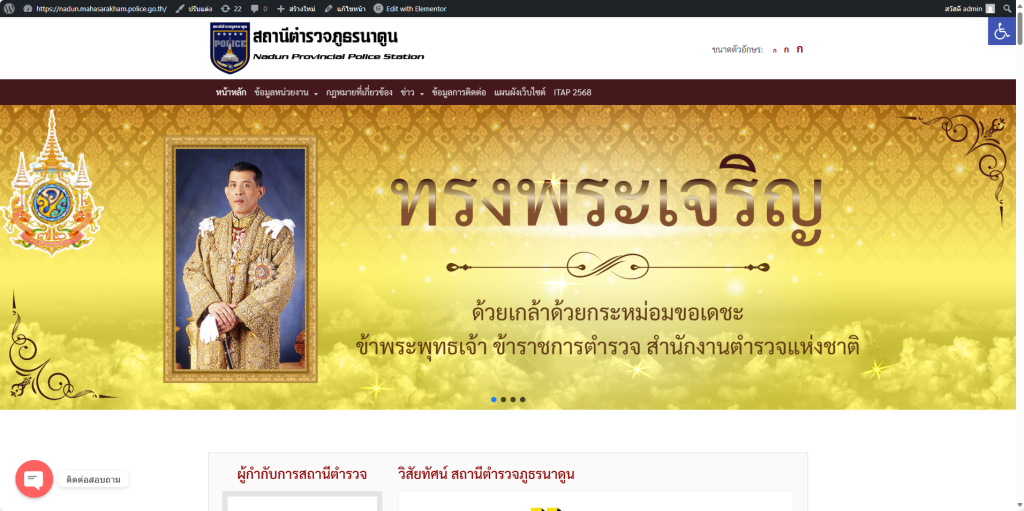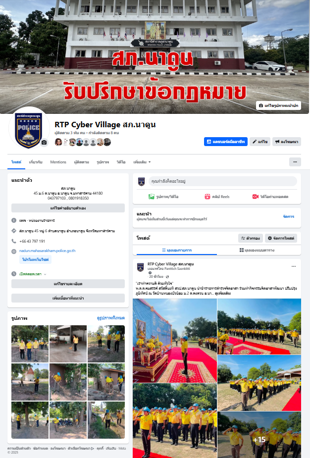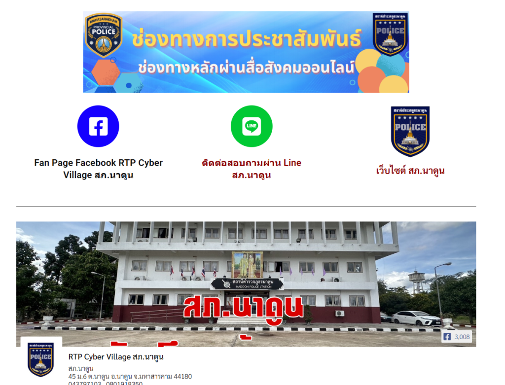 จัดทำช่องทางการสื่อสาร ผลการปฏิบัติงานของสถานีตำรวจ (เว็บไซต์ สภ.นาดูนและเฟสบุ๊ค สภ.นาดูน)
